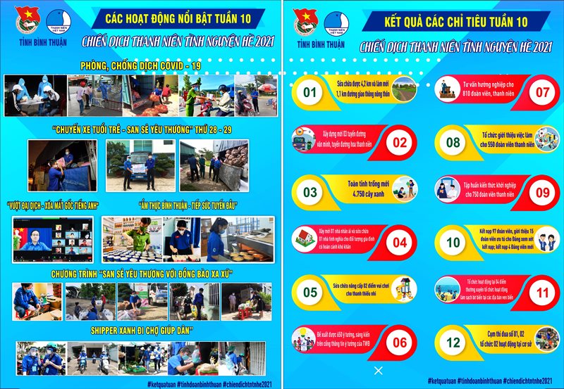 Những kết quả đạt được của tuổi trẻ Bình Thuận trong tuần vừa qua là động lực thúc đẩy các cấp bộ Đoàn càng mạnh mẽ quyết liệt hơn nữa trong công tác phòng chống dịch Covid-19 và hoàn thành các chỉ tiêu trọng tâm của chiến dịch Thanh niên tình nguyện hè 2021 trong giai đoạn cuối./.