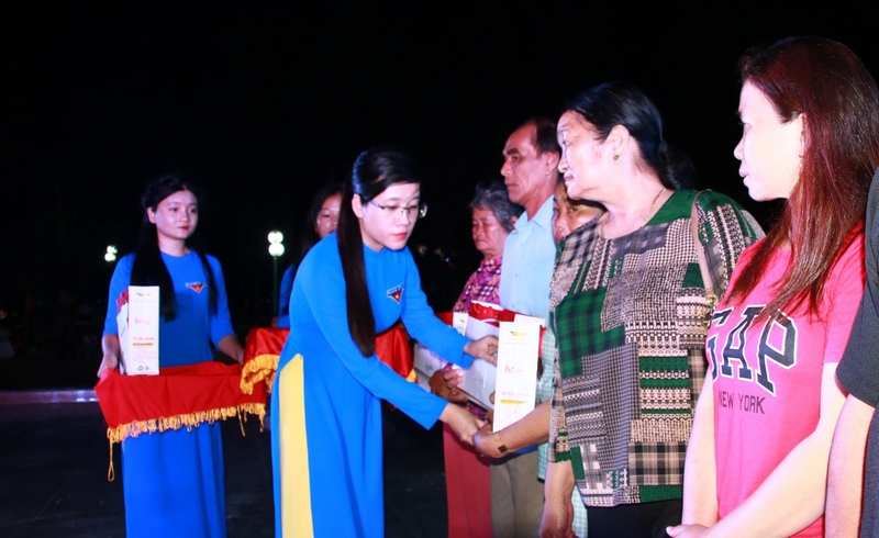 Dịp này, Ban Tổ chức trao tặng 20 suất học bổng cho các em học sinh có hoàn cảnh khó khăn; 20 suất quà cho các gia đình chính sách, gia đình có hoàn cảnh khó khăn với tổng giá trị 40 triệu đồng; trao tặng 1 sân chơi thiếu nhi trị giá 30 triệu đồng; trao tặng 1 căn nhà nhân ái cho hộ nghèo; trao tặng 4 máy tính bảng cho huyện đoàn và 03 xã đoàn; trao tặng 100 cây dừa biển; 200 cờ Tổ quốc với tổng kinh phí 100 triệu đồng./.