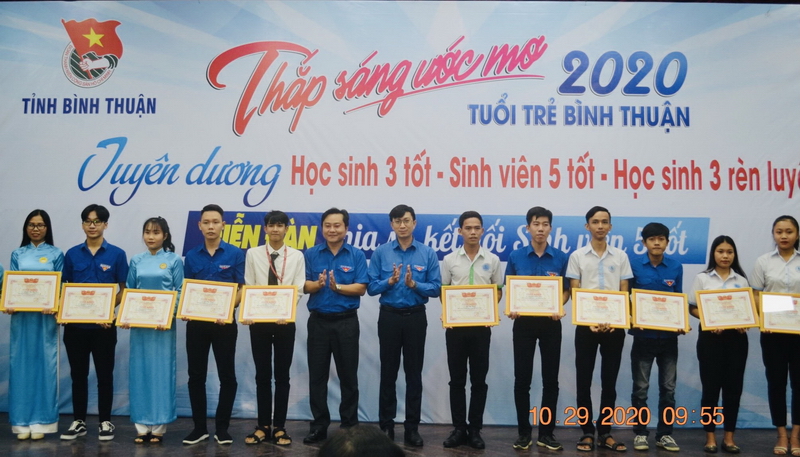Ngoài việc tuyên dương các gương học sinh, sinh viên điển hình, Tỉnh đoàn còn tổ chức chương trình “Thắp sáng ước mơ tuổi trẻ Bình Thuận”. Qua đó, phối hợp Hội khuyến học tỉnh trao 30 suất học bổng Thắp sáng ước mơ cho các em học sinh, sinh viên có hoàn cảnh khó khăn nhưng vượt khó, học giỏi. Đồng thời, phối hợp với Sở Giáo dục và Đào tạo trao tặng 45 suất học bổng Vừ A Dính và Câu lạc bộ Vì Hoàng Sa – Trường Sa thân yêu cho các em học sinh, sinh viên là đồng bào dân tộc thiểu số, con ngư dân Bình Thuận có hoàn cảnh khó khăn, tiếp tục đến trường (mỗi suất học bổng trị giá 1 triệu đồng).