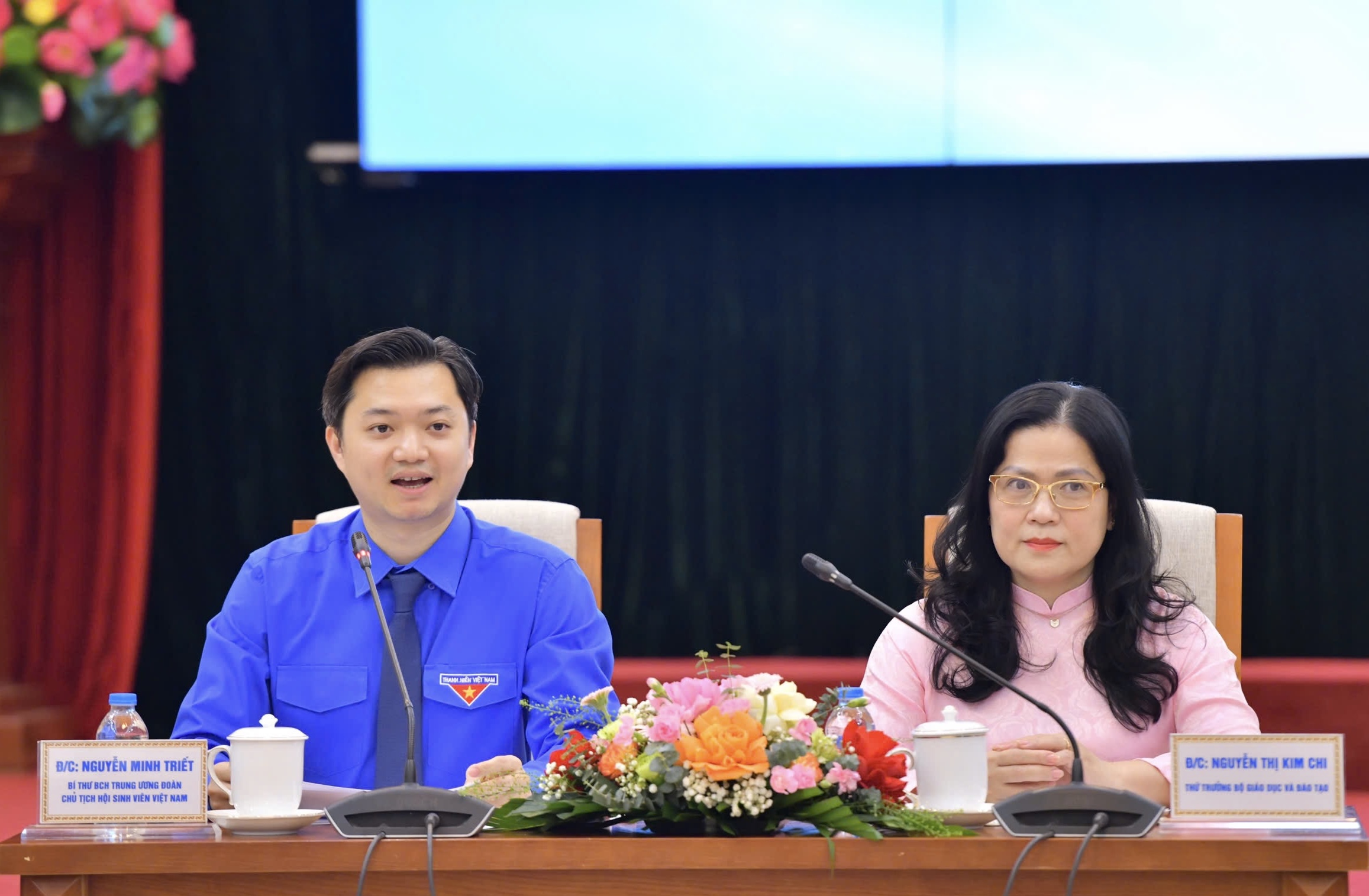 Nhân dịp này, đồng chí Nguyễn Minh Triết, Bí thư Trung ương Đoàn, Chủ tịch Trung ương Hội Sinh viên Việt Nam tặng lẵng hoa tươi thắm chúc mừng lãnh đạo Bộ GDĐT nhân ngày nhà giáo Việt Nam 20/11.