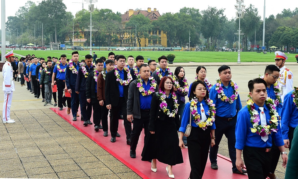 Các đồng chí lãnh đạo cùng đại biểu vào Lăng viếng Chủ tịch Hồ Chí Minh