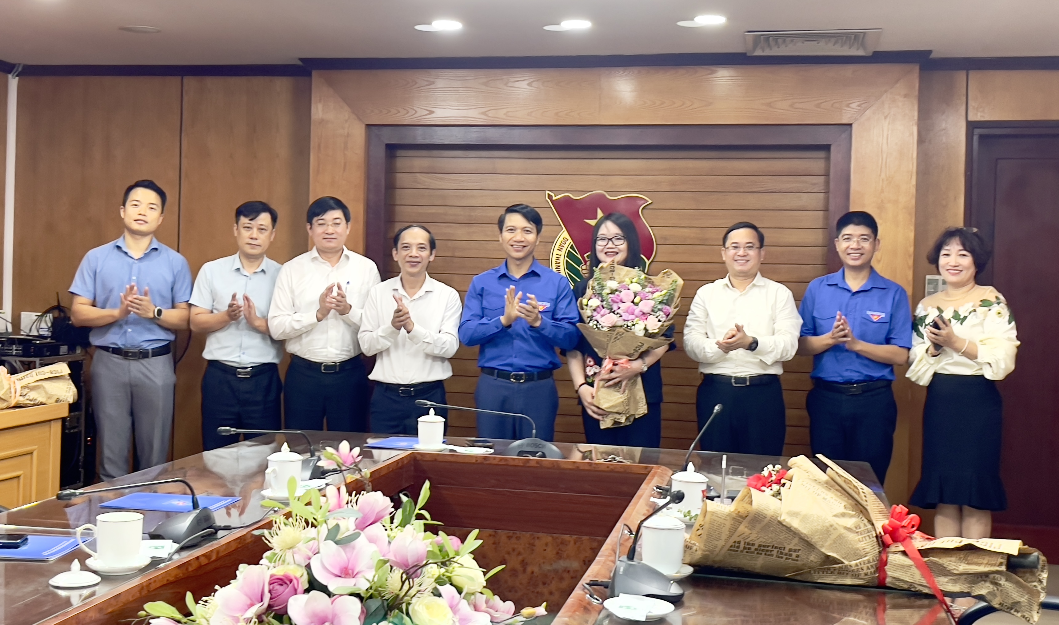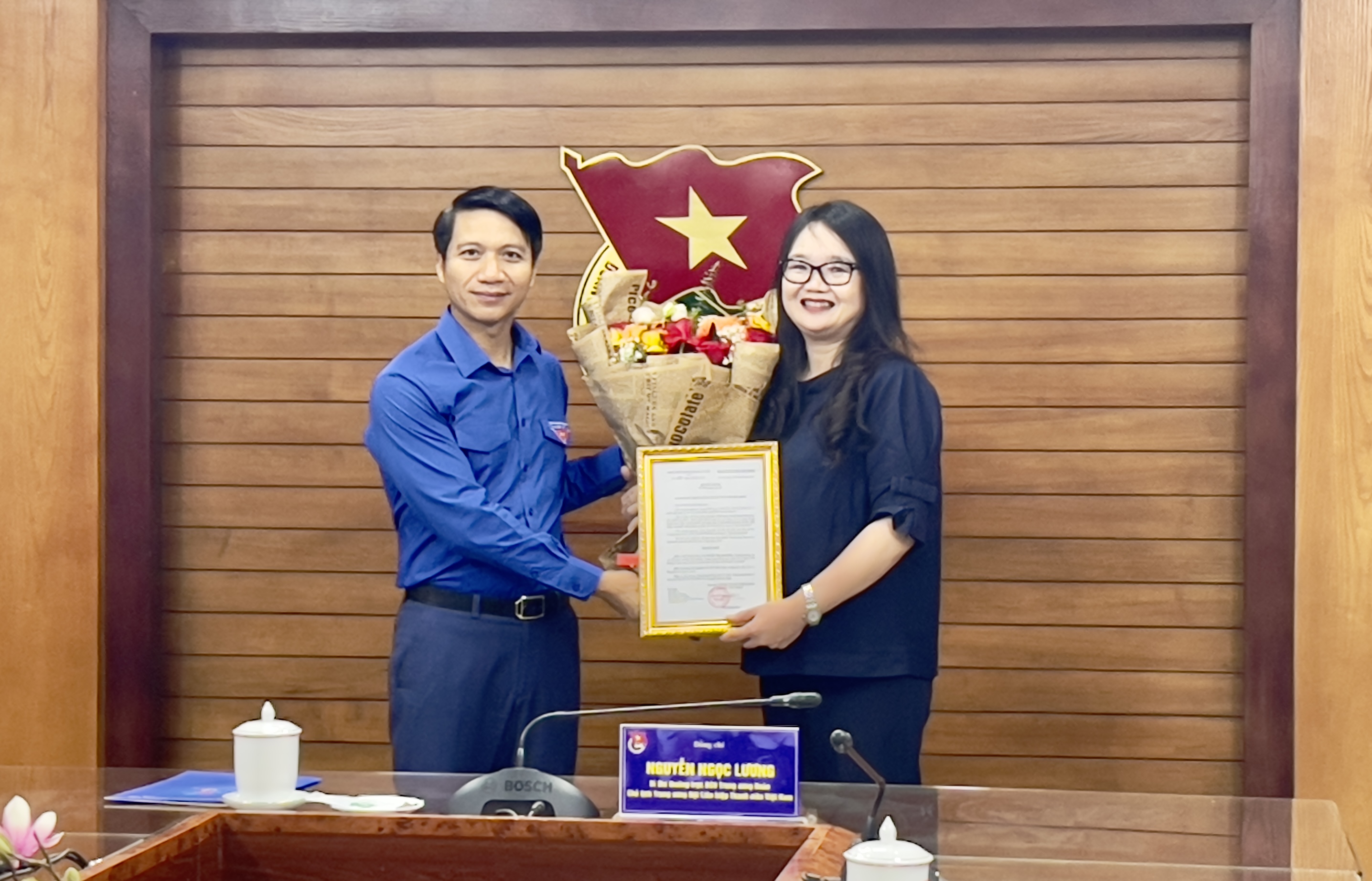 Đồng chí Nguyễn Ngọc Lương - Bí thư thường trực T.Ư Đoàn, Chủ tịch Hội LHTN Việt Nam đã trao quyết định và tặng hoa chúc mừng đồng chí Nguyễn Thị Thu Hiền
