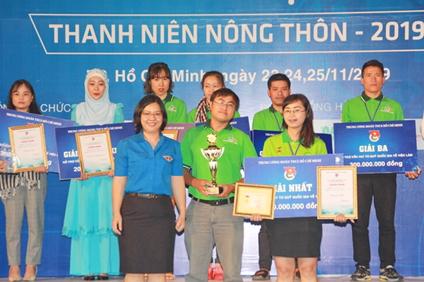 Chị Nguyễn Thị Thu Vân - Ủy viên BTV, Trưởng Ban Thanh niên nông thôn Trung ương Đoàn trao giải Nhất cho Nguyễn Ngọc Hương |