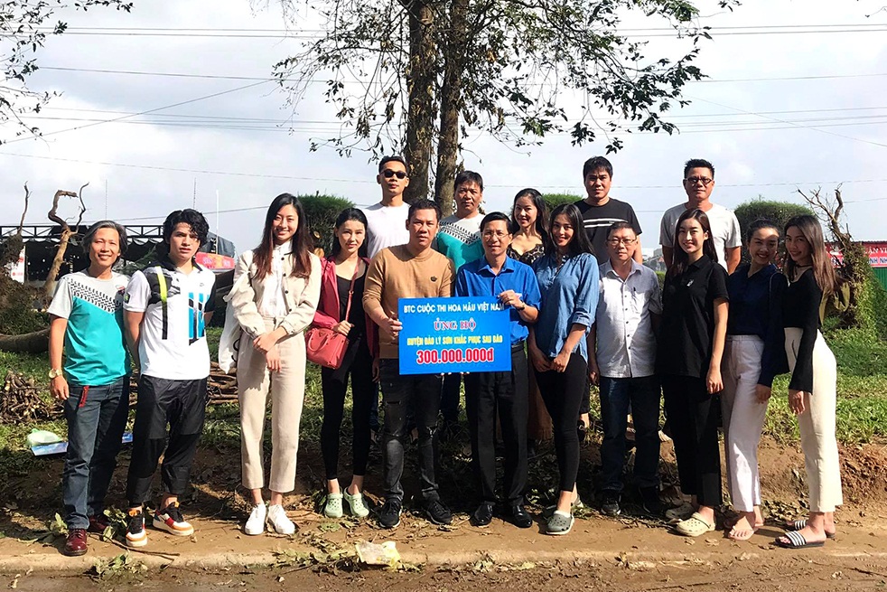 Theo đó, Ban Tổ chức Hoa hậu Việt Nam, Báo Tiền Phong đã trao tặng 900 triệu đồng cho 45 hộ dân tại các huyện Bình Sơn, Sơn Tịnh, TP Quảng Ngãi và 300 triệu đồng cho 15 hộ dân bị sập hoàn toàn nhà cửa do bão số 9 tại huyện đảo Lý Sơn.