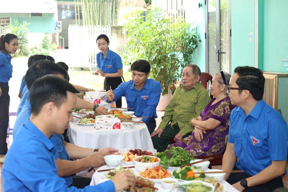 Các bạn đoàn viên thanh niên chuẩn bị bữa cơm tri ân tại gia đình ông Nguyễn Hữu Chấp.