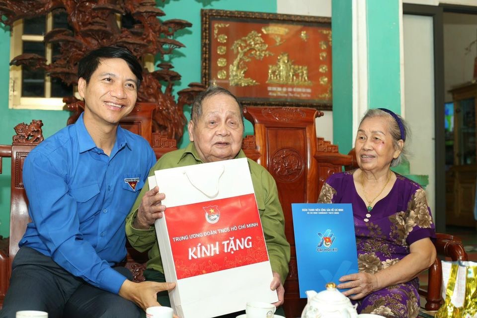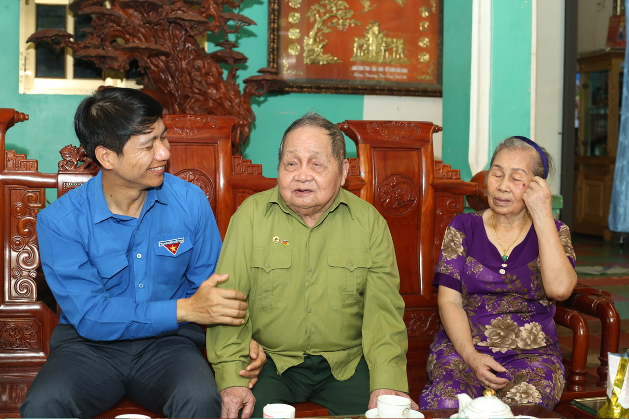 Đồng chí Nguyễn Ngọc Lương, Bí thư Thường trực Trung ương Đoàn, Chủ tịch Hội Liên hiệp Thanh niên Việt Nam thăm hỏi, động viên, trao quà trị giá 5 triệu đồng và hiện vật tặng gia đình ông Nguyễn Hữu Chấp.