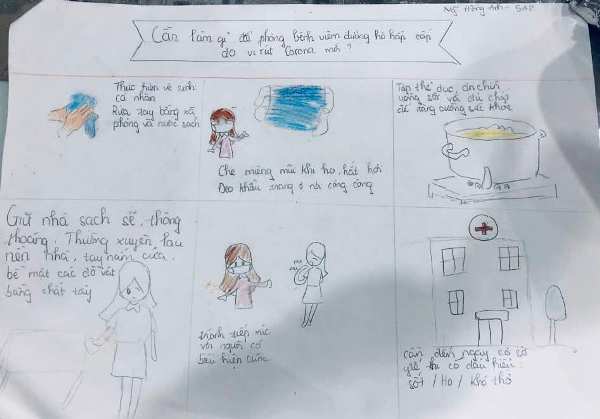 - Bằng sự sáng tạo không ngừng các con hãy tạo ra những câu khẩu hiệu, sơ đồ tư duy hoặc những bức tranh tuyên truyền về dịch bệnh Corona và các biện pháp phòng ngừa để kiến thức hữu ích được lan toả đến tất cả mọi người nhé!