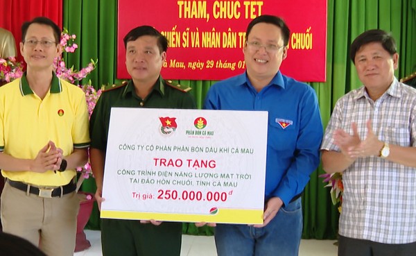 ĐTN: Ngày 29/01, Ban Thường vụ Tỉnh đoàn Cà Mau phối hợp với Công ty Cổ phần Phân bón Dầu khí Cà Mau bàn giao công trình “Điện năng lượng mặt trời” tại Đảo Thanh niên Hòn Chuối