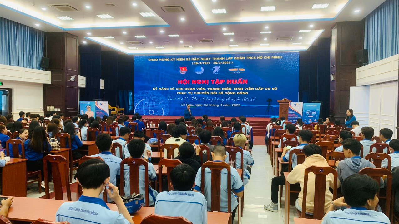 Mở đầu chương trình là hoạt động Hội nghị tập huấn nâng cao kỹ năng số cho đoàn viên, sinh viên trên địa bàn tỉnh Cà Mau phục vụ chuyển đổi số. Hoạt động tập huấn giúp các bạn đoàn viên, sinh viên tiếp cận và hiểu rõ hơn về đường lối, chủ trương của Đảng, chính sách pháp luật của Nhà nước trong chuyển đổi số cùng các bước để cập nhật và sử dụng ứng dụng định danh điện tử, thanh toán điện tử.