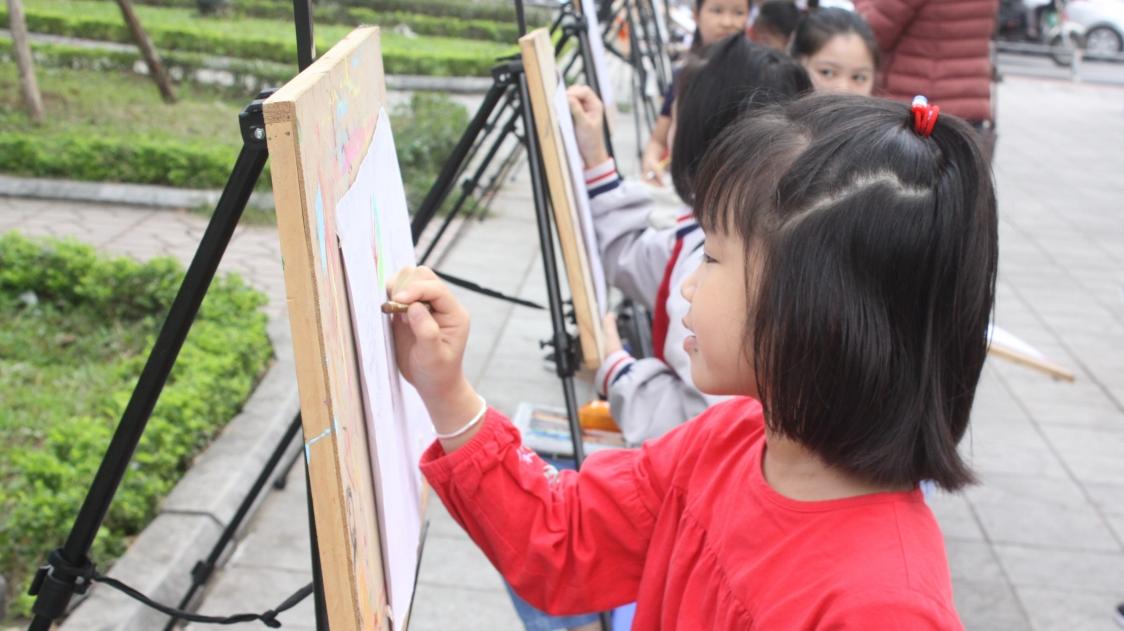 Các em thiếu nhi tham gia thi vẽ tranh bảo vệ môi trường |