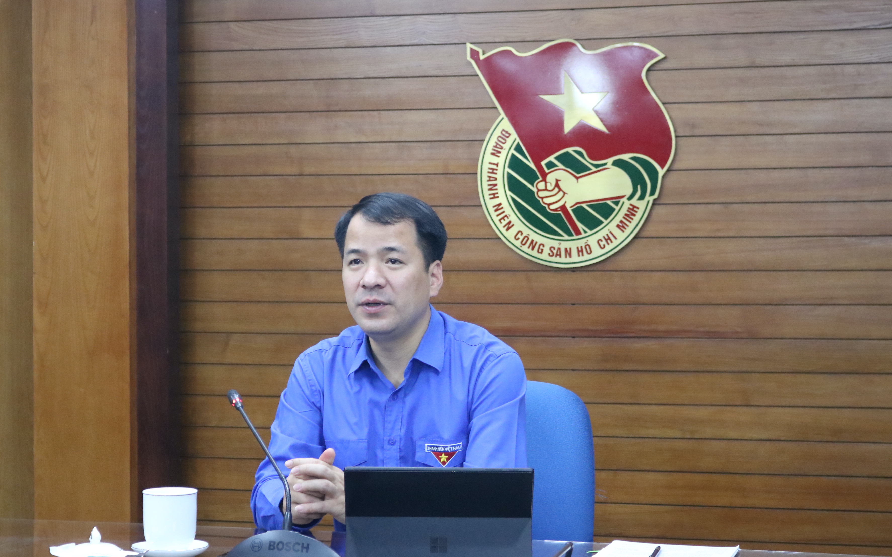 Đồng chí Đỗ Tuấn Hanh, Phó Trưởng ban Thanh niên công nhân và đô thị Trung ương Đoàn phát biểu tại điểm cầu Trung ương