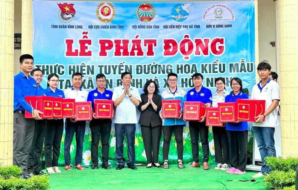 Ngày 18/7/2023, Tỉnh Đoàn Vĩnh Long phối hợp với Hội Cựu chiến binh, Hội Nông dân, Hội Liên hiệp Phụ nữ tỉnh tổ chức lễ phát động thực hiện tuyến đường hoa kiểu mẫu tại xã An Bình và xã Hòa Ninh (huyện Long Hồ).