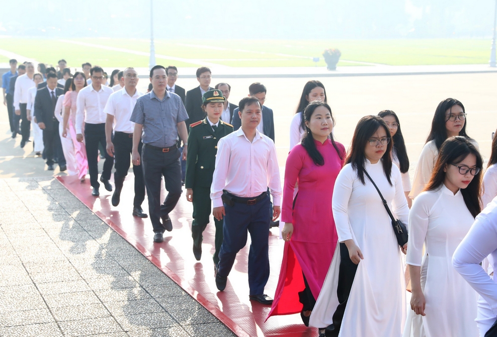 Các đại biểu vào lăng viếng Chủ tịch Hồ Chí Minh. Ảnh: Dương Triều