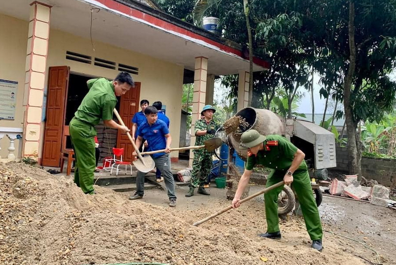Đoàn viên thanh niên tham gia chỉnh trang khuôn viên nhà văn hóa