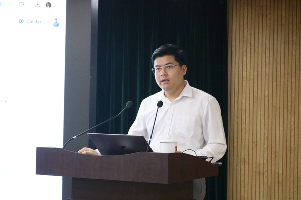 Đồng chí Hoàng Đức Nam, Uỷ viên Ban Chấp hành, Phó Trưởng ban Tuyên giáo Trung ương Đoàn trình bày chuyên đề Ứng dụng AI trong công tác tham mưu tại cơ quan Trung ương Đoàn