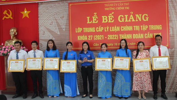 Dịp này, có 08 học viên vinh dự nhận Bằng khen của Thành đoàn Cần Thơ về việc có kết quả học tập loại Giỏi - Lớp Trung cấp lý luận chính trị tập trung khoá 27, năm học 2021 - 2022 và 05 học viên nhận Giấy khen của Trường Trường Chính trị TP. Cần Thơ về việc có thành tích tốt trong học tập và rèn luyện.