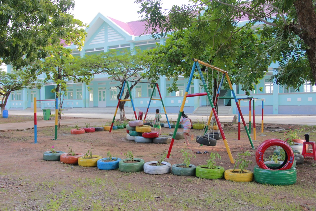 Sân chơi thiếu nhi do các bạn sinh viên Trường Đại học Nam Cần Thơ thực hiện tại xã Cư Kbang, huyện Ea Súp. Ảnh: Đoàn Trường Đại học Nam Cần Thơ.