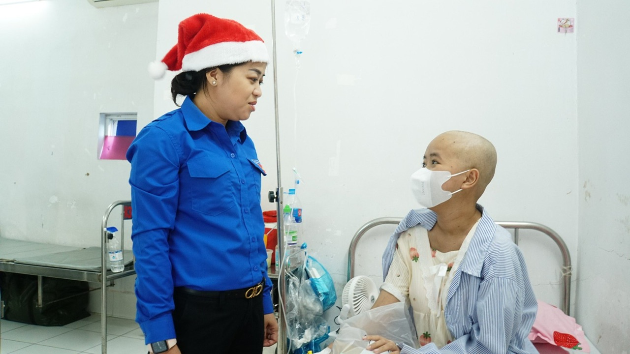 Đồng chí Lư Thị Ngọc Anh, UVBTV Trung ương Đoàn, Bí thư Thành Đoàn Cần Thơ đến thăm và động viên các bệnh nhân nhi tại bệnh viện Huyết học – Truyền máu thành phố