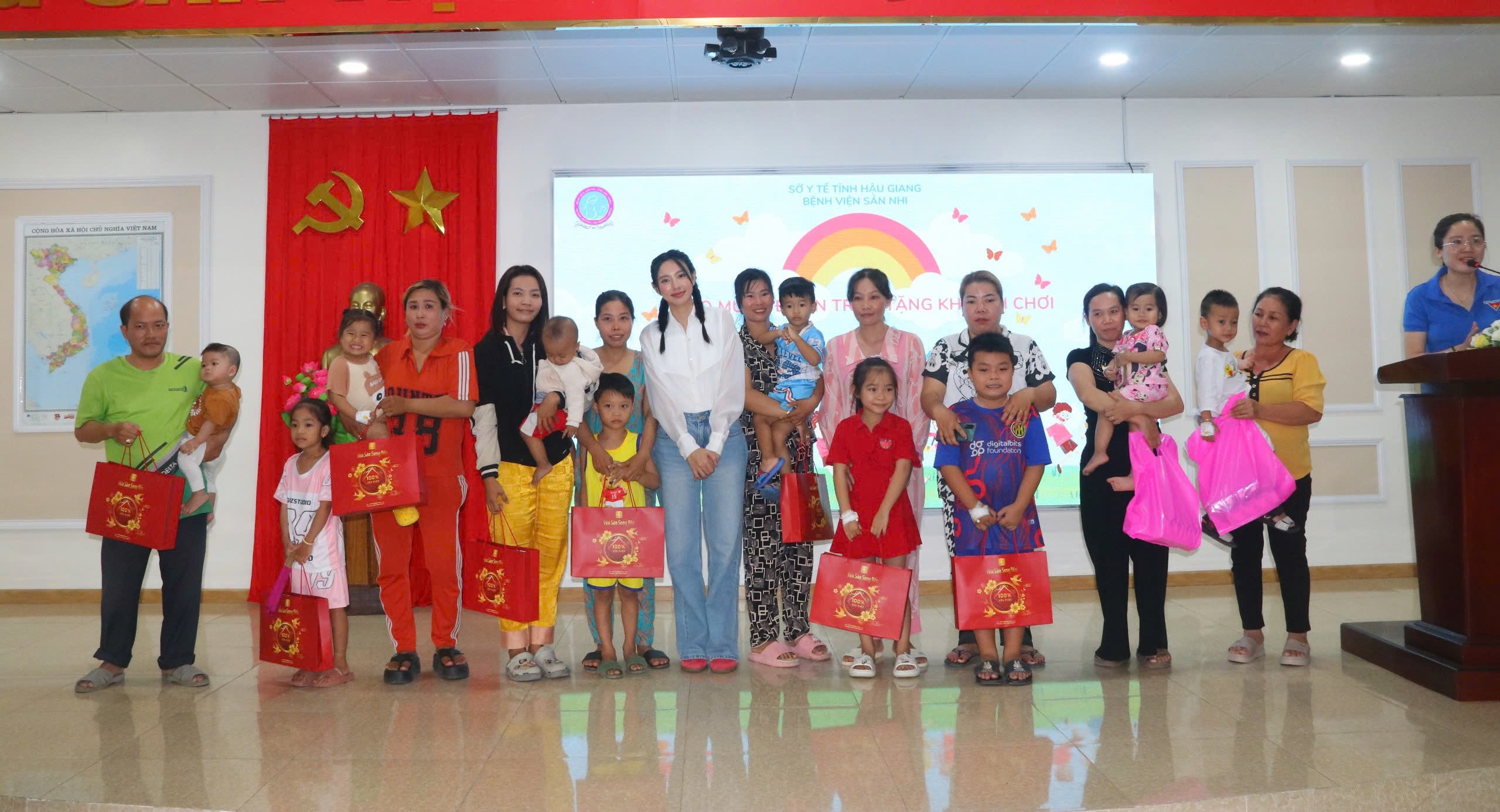 Nhân dịp này, Công ty Giải trí Sen Vàng, tổ chức Giọt Nắng (Sunbeams) và Hoa hậu Nguyễn Thúc Thùy Tiên đã trao tặng những phần quà ý nghĩa nhằm động viên tinh thần các em thiếu nhi đang điều trị tại bệnh viện.
