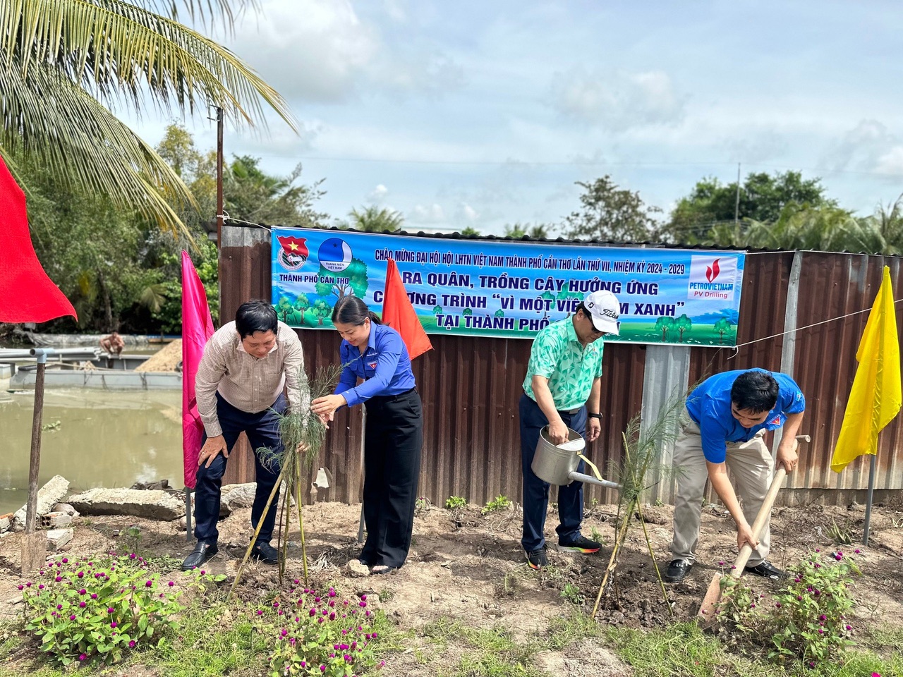 Đồng chí Trần Việt Trường, Phó Bí thư Thành ủy, Chủ tịch UBND TP Cần Thơ, trao cờ lệnh khởi động Chiến dịch TNTN hè năm 2024 cho đại diện tuổi trẻ TP Cần Thơ.