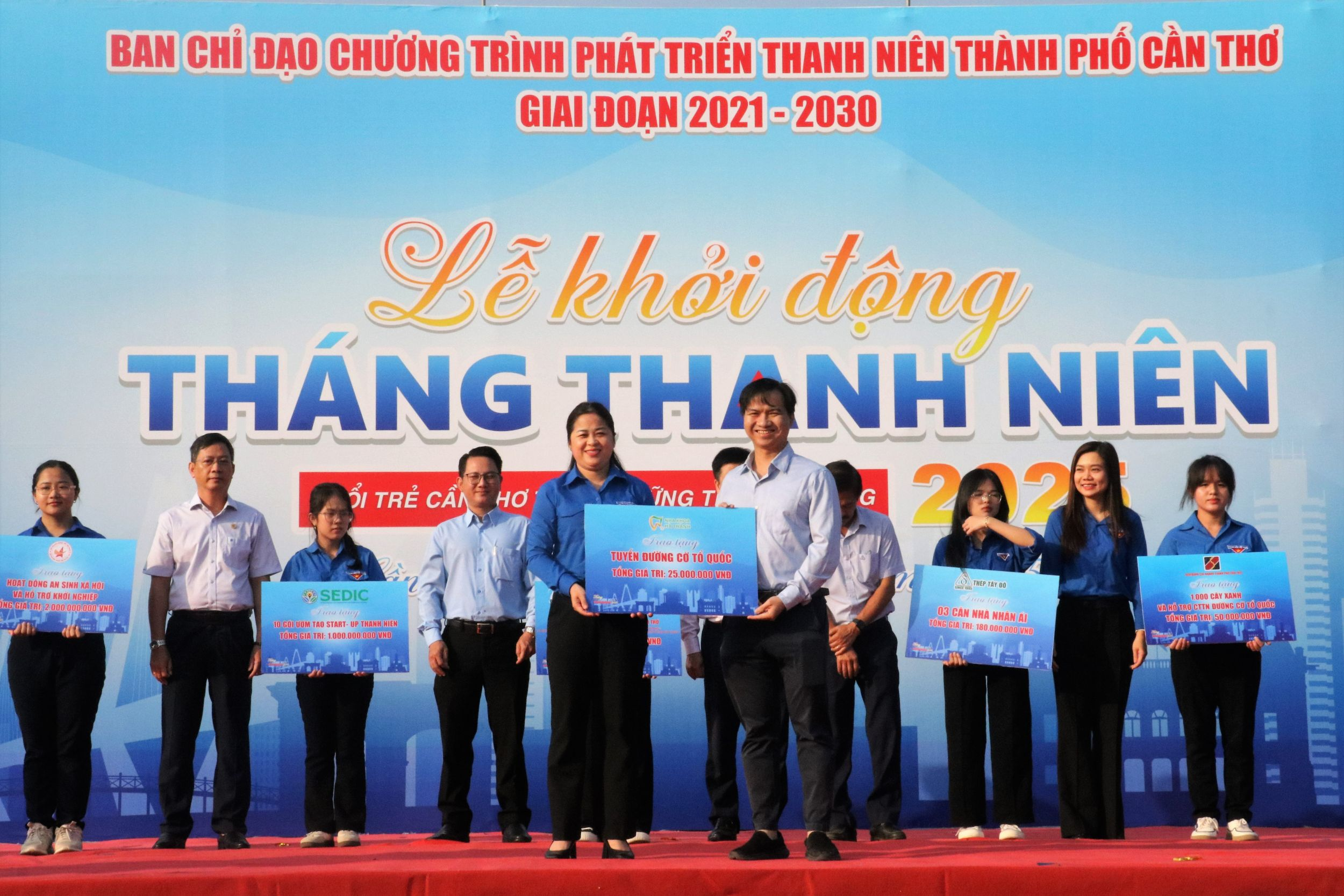 Dịp này, Thành đoàn tiếp nhận các nguồn lực từ các doanh nghiệp hỗ trợ các hoạt động Tháng Thanh niên, với tổng giá trị hơn 5 tỉ đồng. Tại buổi lễ, Thành đoàn trao 20 suất học bổng, 10 xe đạp cho học sinh vượt khó học tốt và 50 phần quà cho bà con có hoàn cảnh khó khăn.