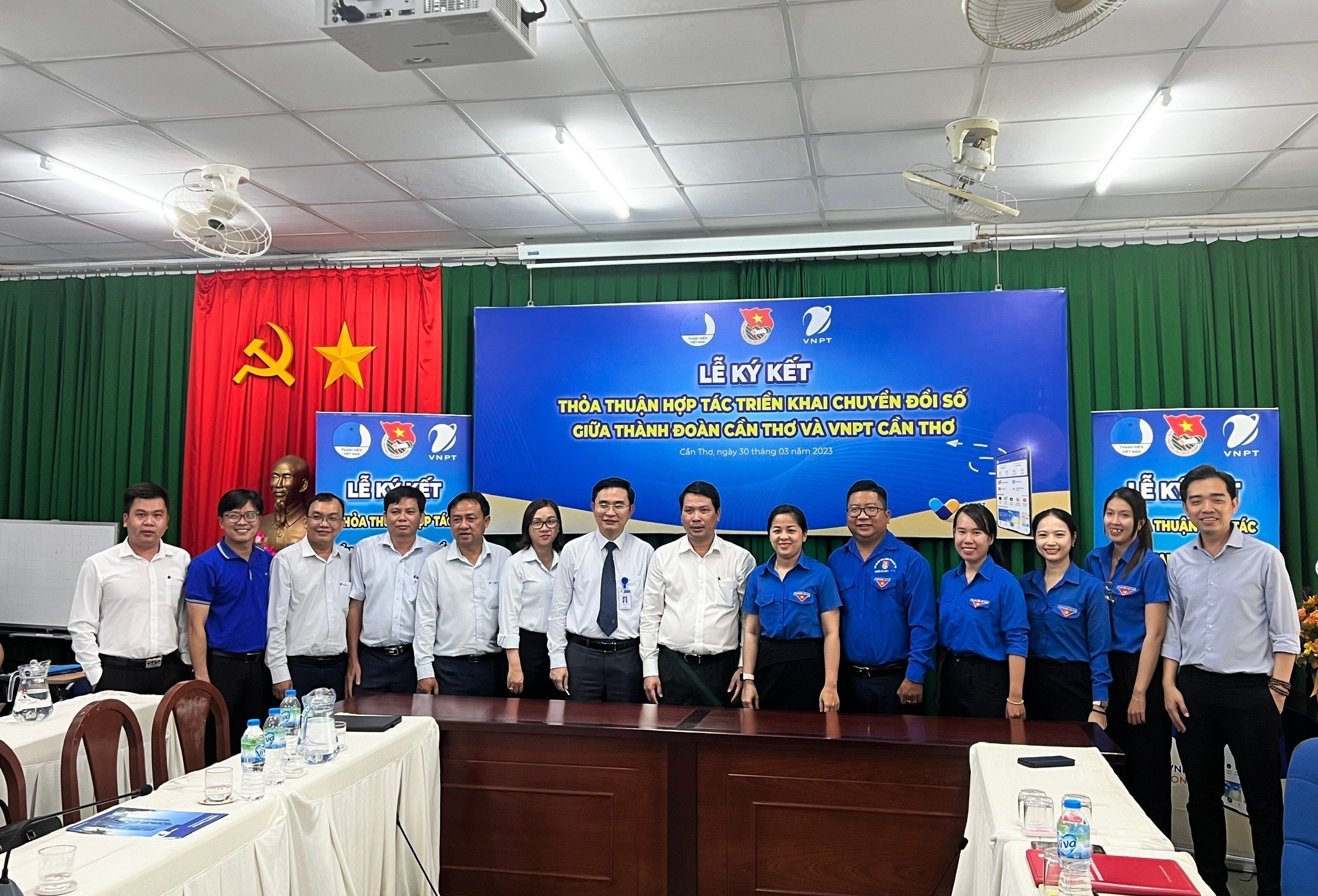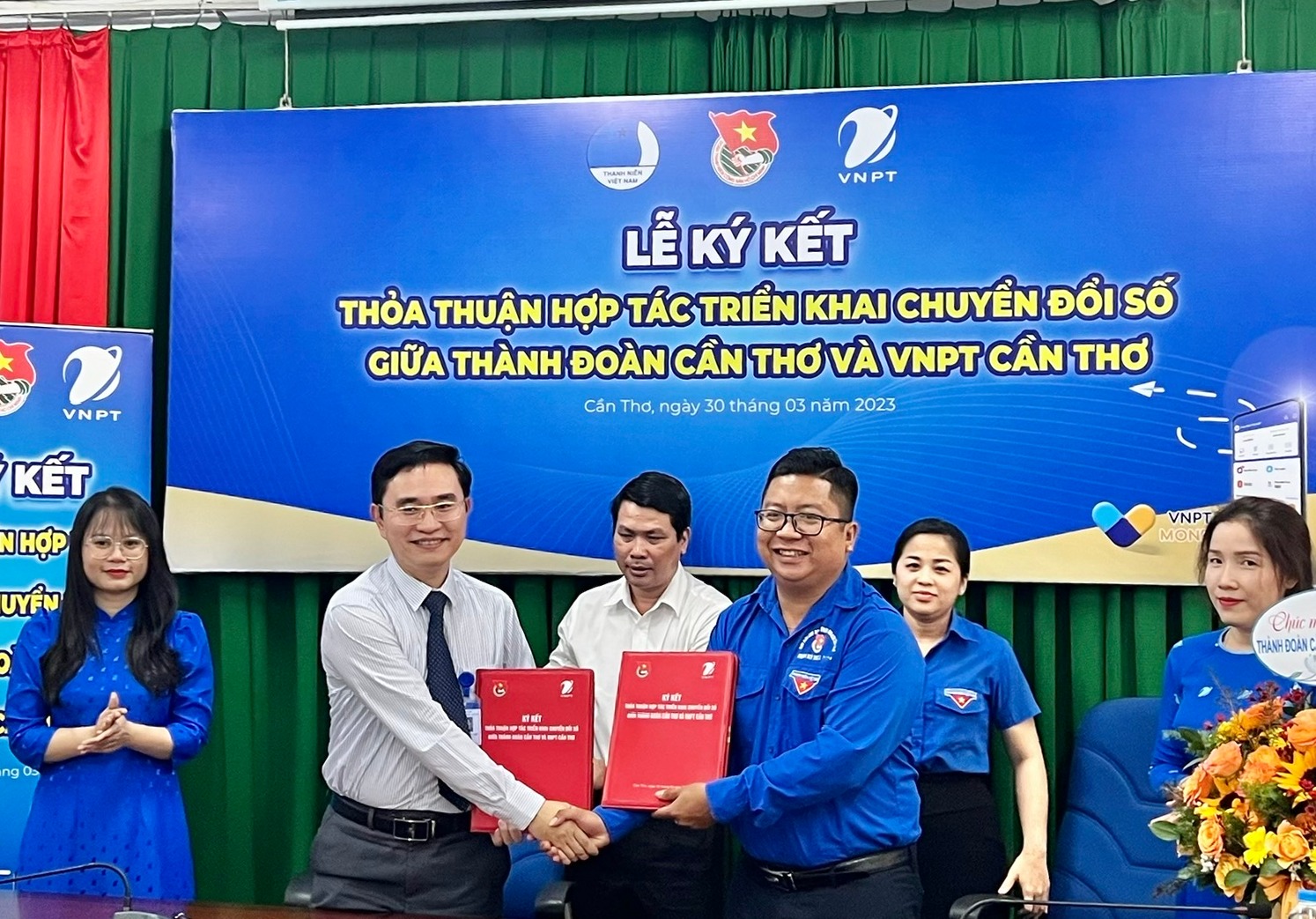 Tại buổi Lễ, lãnh đạo hai đơn vị đã ký kết Chương trình thảo thuận hợp tác triển khai các hoạt động chuyển đổi số giai đoạn 2023-2025. Theo nội dung Chương trình phối hợp giữa Thành đoàn và VNPT Cần Thơ hai đơn vị sẽ phối hợp và triển khai nhiều hoạt động hướng đến cán bộ đoàn, đoàn viên thanh niên và người dân thành phố như: tập huấn, truyền thông chuyển đổi số, vận động thúc đẩy việc thanh toán không dùng tiền mặt, triển khai các ứng dụng số hóa như công cụ thanh toán không dùng tiền mặt ví VNPT Money, app MyVNPT…