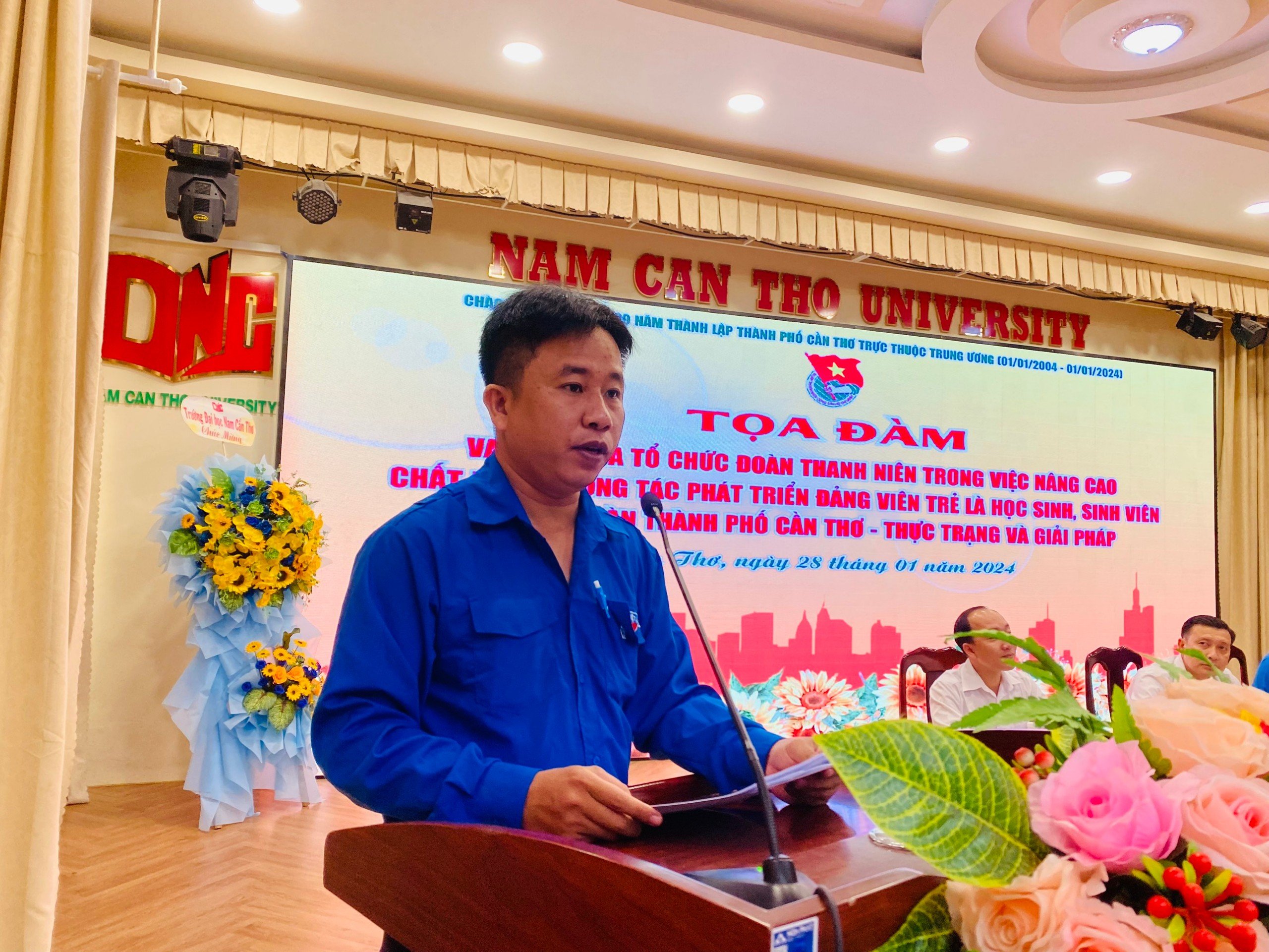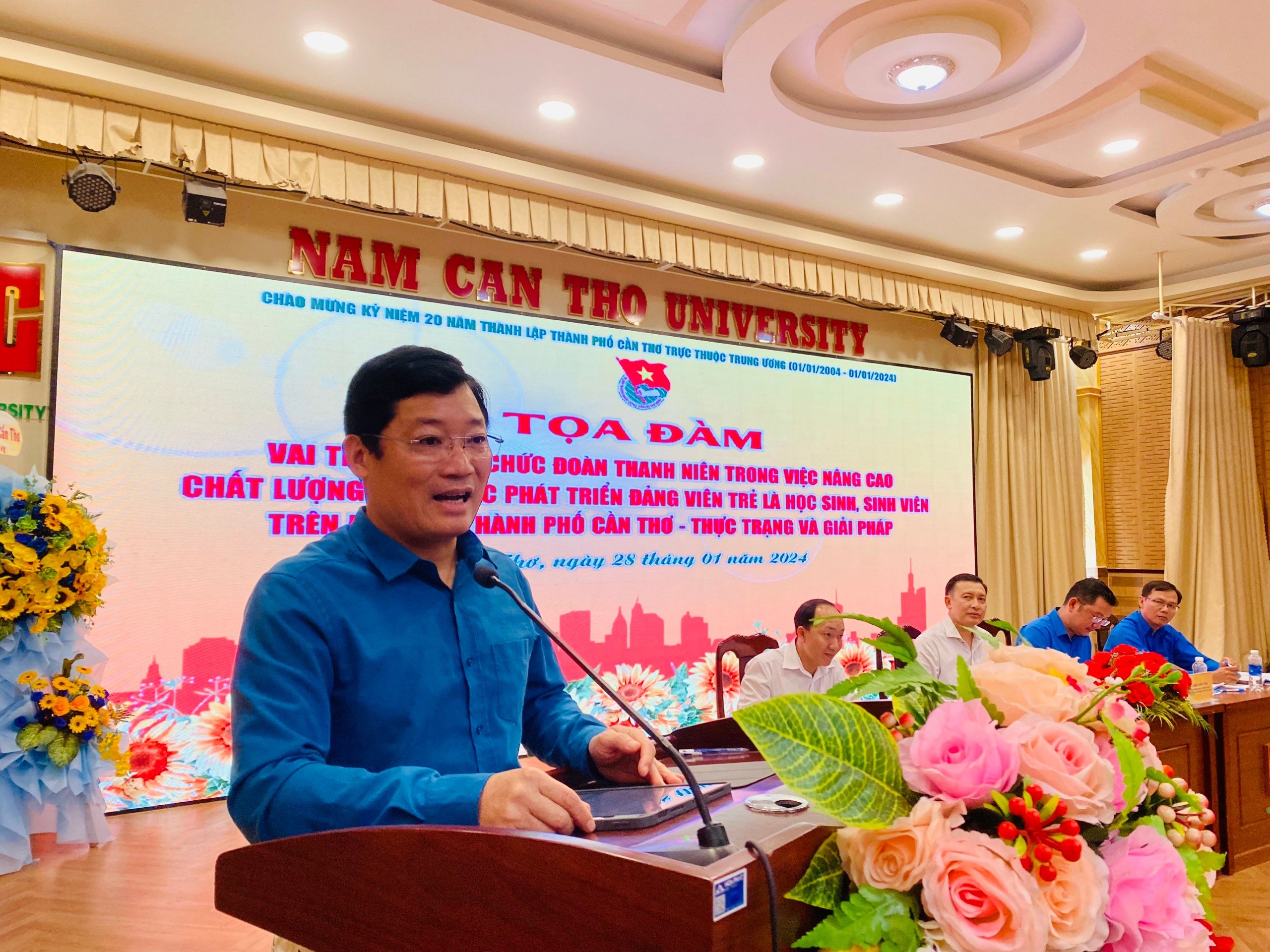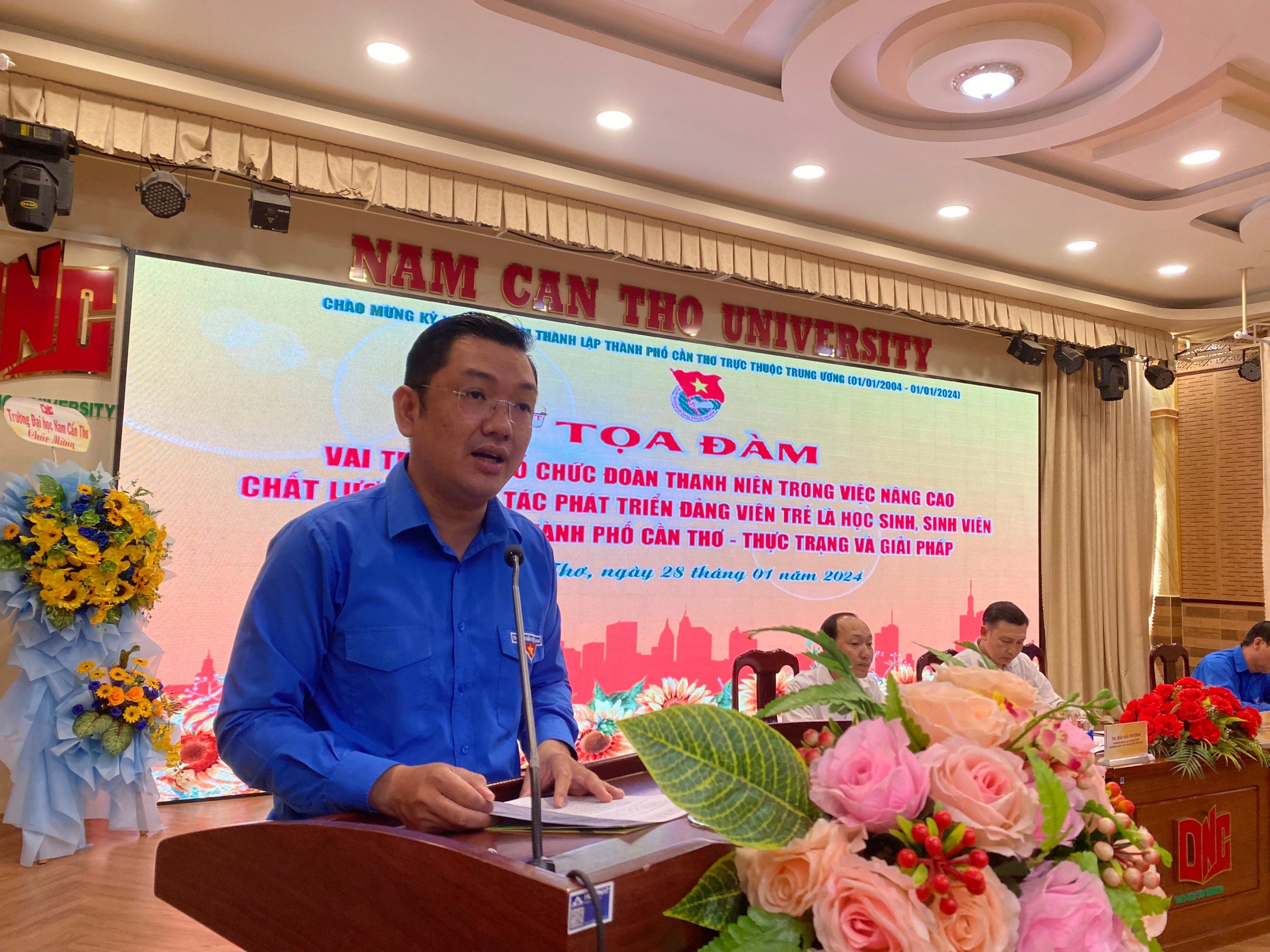 Chủ tọa tọa đàm có: đồng chí Lâm Văn Tân, Phó Bí thư Thường trực Thành đoàn, Chủ tịch Hội Sinh viên Việt Nam thành phố Cần Thơ; TS. Bùi Hải Dương, Trưởng Khoa Xây dựng Đảng, Trường Chính trị thành phố Cần Thơ; đồng chí Đặng Hải Đăng, Ủy viên Ban Thường vụ, Trưởng ban Tổ chức Kiểm tra Thành đoàn, Phó Chủ tịch Hội Sinh viên Việt Nam thành phố Cần Thơ; đồng chí Đào Công Nhật, Ủy viên Ban Thường vụ, Trưởng ban Thanh thiếu nhi trường học Thành đoàn, Phó Chủ tịch Hội Sinh viên Việt Nam thành phố Cần Thơ.