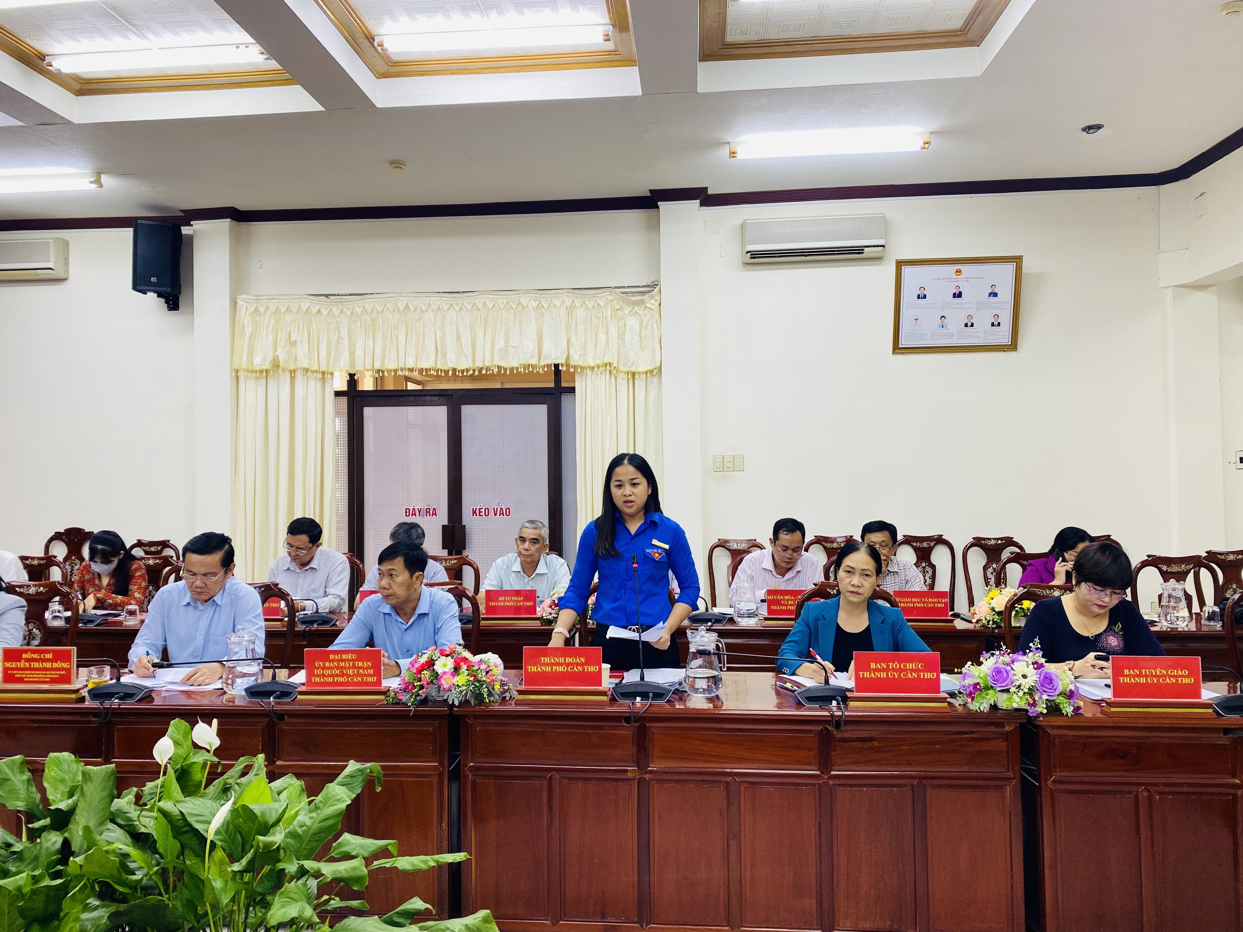 Đồng chí Lư Thị Ngọc Anh, Ủy viên Ban Thường vụ Trung ương Đoàn, Bí thư Thành đoàn Cần Thơ báo cáo về kết quả nổi bật trong công tác Đoàn và phong trào thanh thiếu nhi thành phố trong thời gian qua