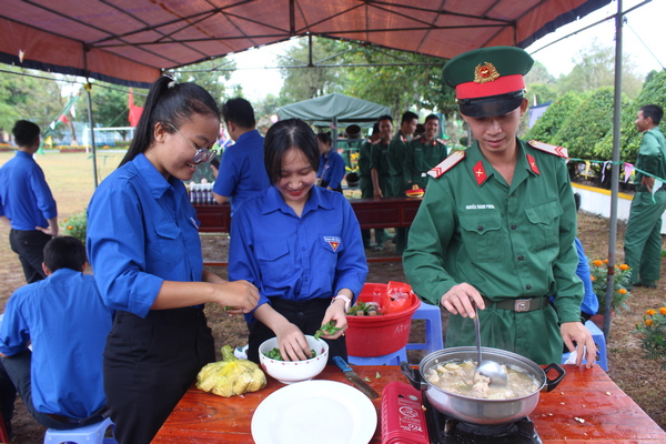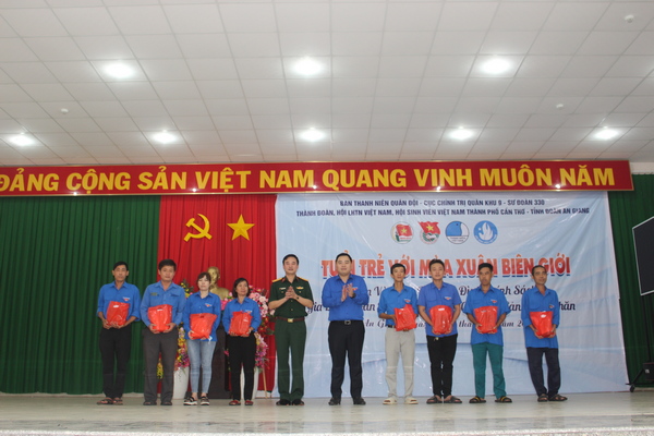 Trong chương trình văn nghệ giao lưu “Tuổi trẻ với mùa xuân biên giới”, ĐVTN và các chiến sĩ được lắng đọng trong không gian nghệ thuật ca múa với 10 tiết mục đặc sắc mang dấu ấn ngợi ca tình chiến sĩ, tình yêu quê hương đất nước, mùa xuân,… đến từ Đội văn nghệ Trường Đại học Cần Thơ và Trung đoàn BB1. Trong dịp này, Thành đoàn Cần Thơ đã trao tặng 80 phần quà, 160 đòn bánh tét cho ĐVTN có hoàn cảnh khó khăn tham gia công tác nơi biên giới và tặng 01 phần quà cho Trung đoàn BB1 Sư đoàn 330.