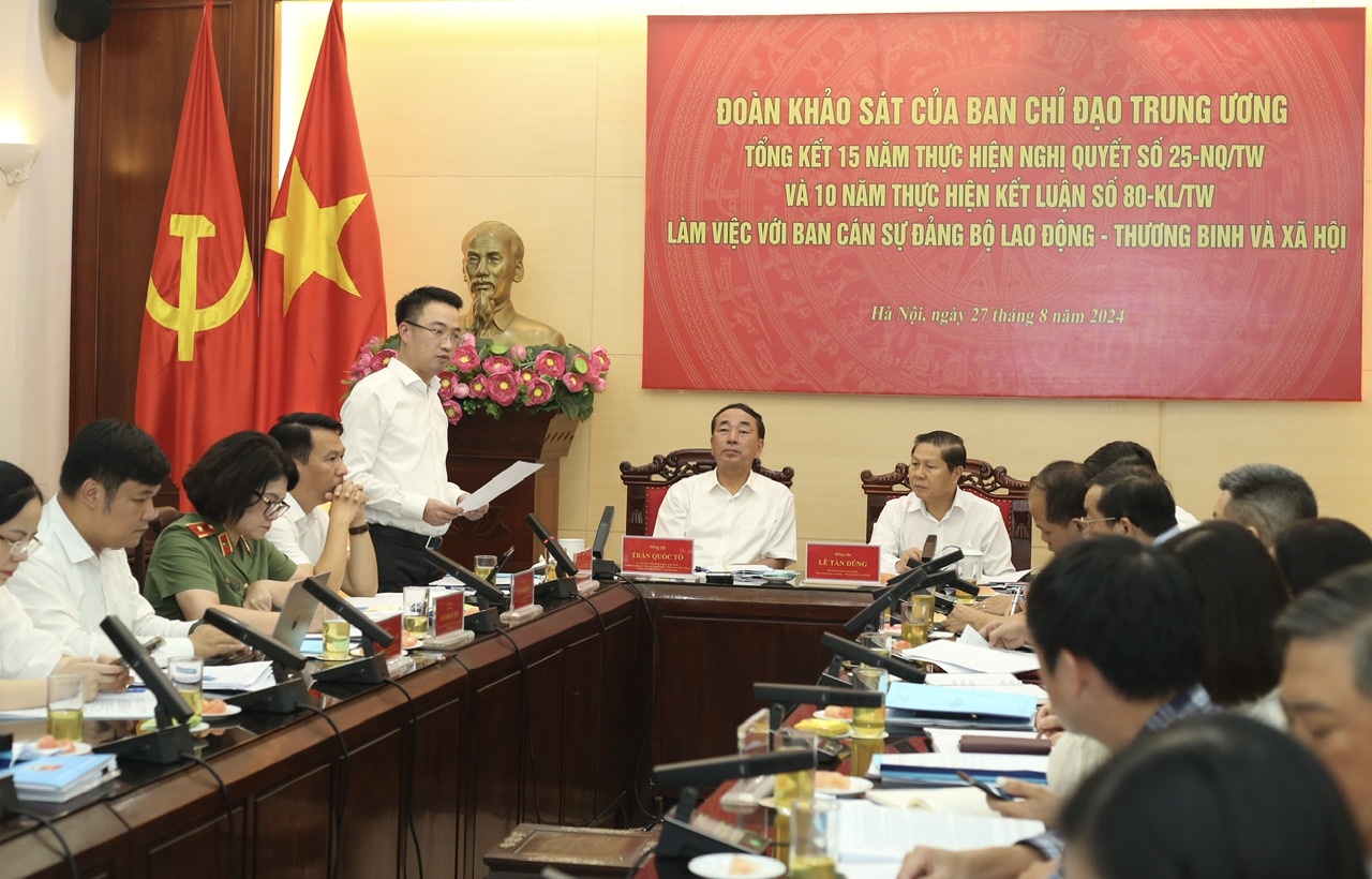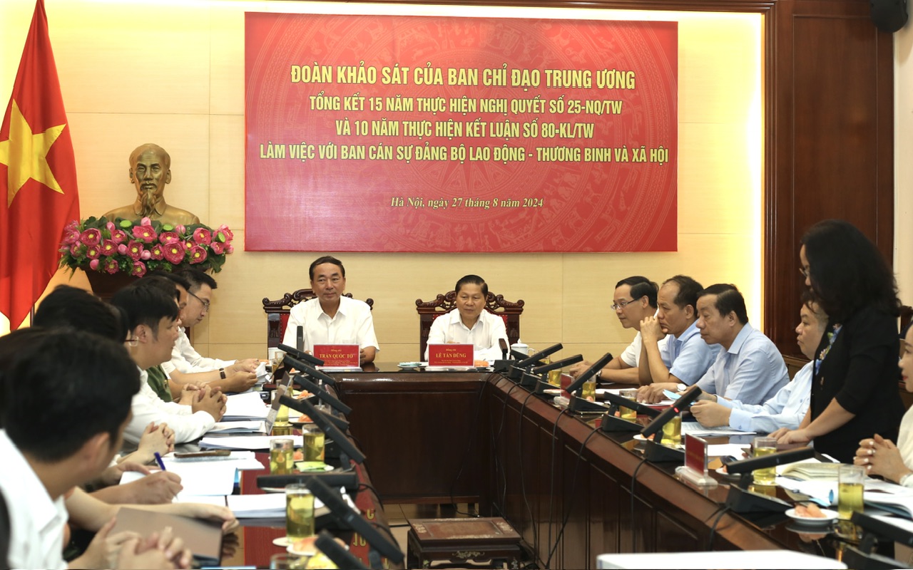 Trong thời gian tới, đồng chí Trần Quốc Tỏ mong muốn, Ban cán sự Đảng, lãnh đạo Bộ LĐ-TB&XH căn cứ vào Nghị quyết 25 trên cơ sở chức năng, thẩm quyền, phát huy thành quả đạt được, đưa ra giải pháp tiếp tục thực hiện tốt hơn Nghị quyết 25 và Kết luận 80.