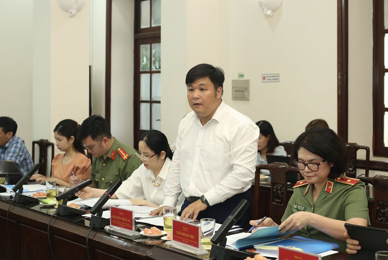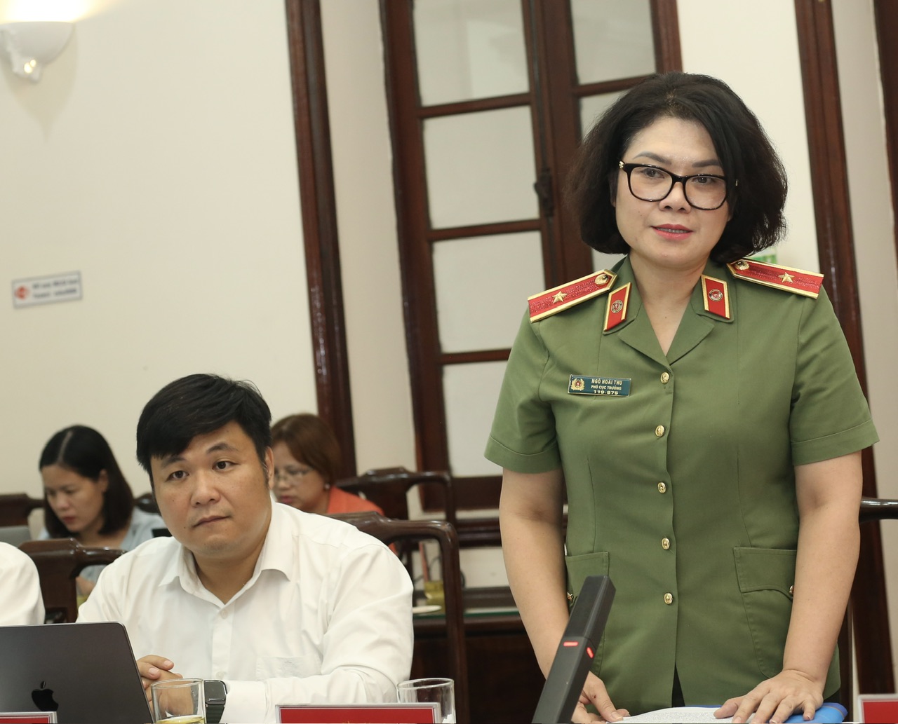 Đồng chí Thiếu tướng Ngô Hoài Thu, Phó Cục trưởng, Cục Công tác đảng và công tác chính trị, Bộ Công an thảo luận tại Hội nghị