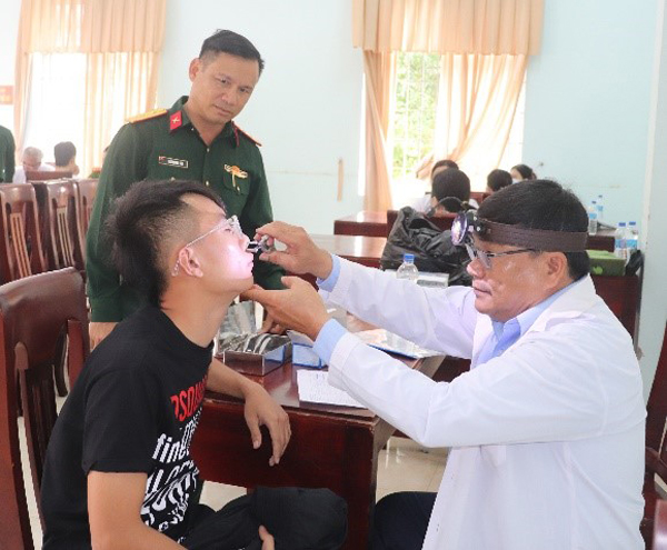Đại diện lãnh đạo Bộ CHQS tỉnh Phú Yên kiểm tra công tác khám sức khỏe, gọi công dân nhập ngũ năm 2025 tại huyện Phú Hòa. Ảnh: QUỲNH CHI