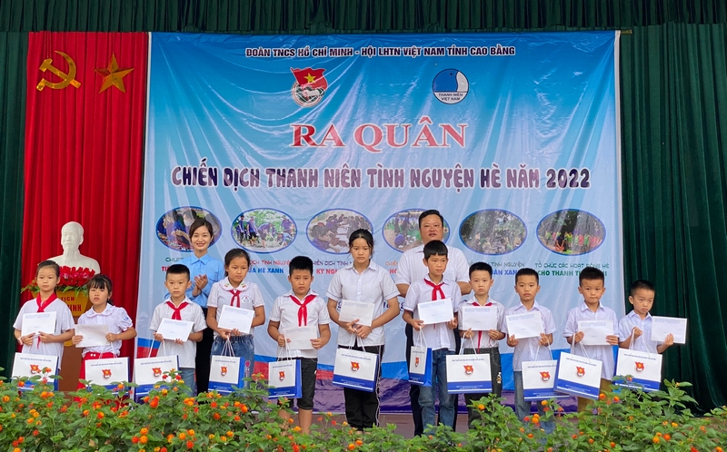 Tại lễ ra quân, Tỉnh Đoàn - Hội đồng Đội tỉnh đã trao tặng 25 suất học bổng của Hội Cựu phụ trách thiếu nhi thành phố Hà Nội cùng các phần quà (mỗi suất trị giá 300.000đ) cho các em học sinh có hoàn cảnh khó khăn vươn lên trong học tập và phần quà an sinh cho 31 em học sinh tại xóm Văn Thụ, đặc biệt Sở giao thông và vận tải tỉnh Cao Bằng dành tặng 02 thiếu nhi mồ côi cha mẹ trị giá 5.000.000đ và trao kinh phí 70.000.000đ hỗ trợ làm đường giao thông nông thôn.