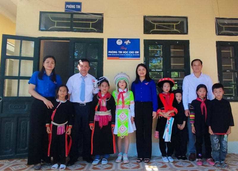 Với mong muốn giúp giáo viên và học sinh Trường Tiểu học Kim Cúc có phòng tin học để phục vụ cho giảng dạy và học tập, Tỉnh Đoàn - Hội LHTN tỉnh Cao Bằng đã kết nối với Trung tâm Thông tin Nguồn lực Tình nguyện Việt Nam huy động nguồn lực tài trợ từ Hiệp hội Thương mại Đài Loan tại Hà Nội để triển khai công trình “Phòng máy tính cho em”. Công trình được lắp đặt vào tháng 8/2023, quy mô 01 phòng, số lượng 12 máy tính với tổng trị giá công trình 98.400.000đ.