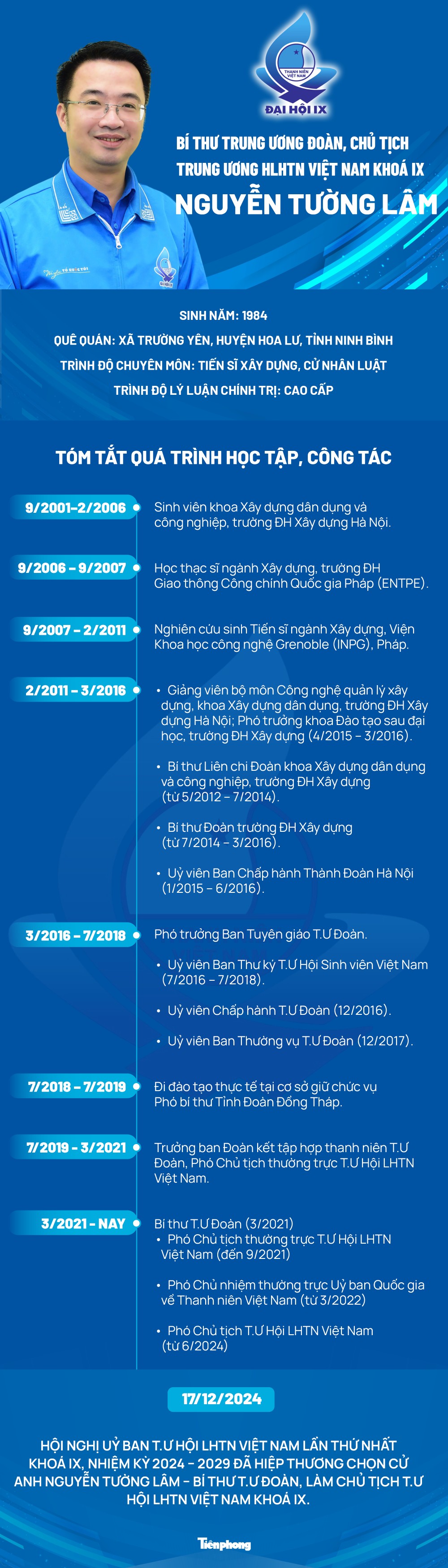Tại Hội nghị Ủy ban T.Ư Hội LHTN Việt Nam lần thứ nhất khóa IX, nhiệm kỳ 2024 – 2029 đồng chí Nguyễn Tường Lâm – Bí thư Trung ương Đoàn, Phó Chủ nhiệm thường trực Ủy ban Quốc gia về Thanh niên Việt Nam, Phó Chủ tịch T.Ư Hội LHTN Việt Nam khóa VIII, được tín nhiệm chọn cử làm Chủ tịch T.Ư Hội LHTN Việt Nam khóa IX, nhiệm kỳ 2024 – 2029