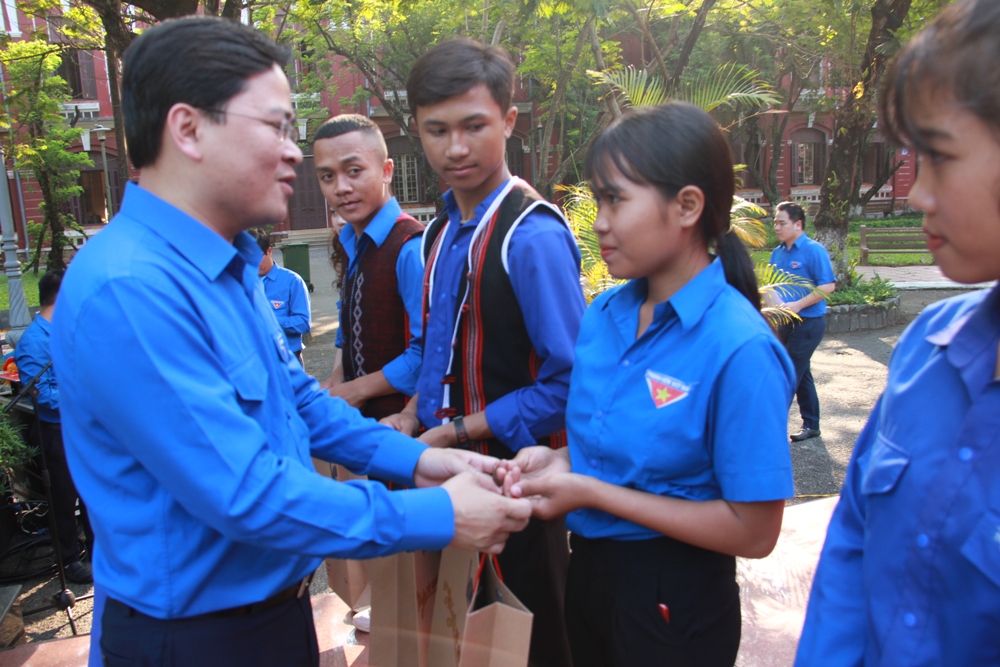 Anh Nguyễn Anh Tuấn, Bí thư thường trực Trung ương Đoàn, Chủ tịch Trung ương Hội LHTN Việt Nam tặng quà cho các em dân tộc thiểu số