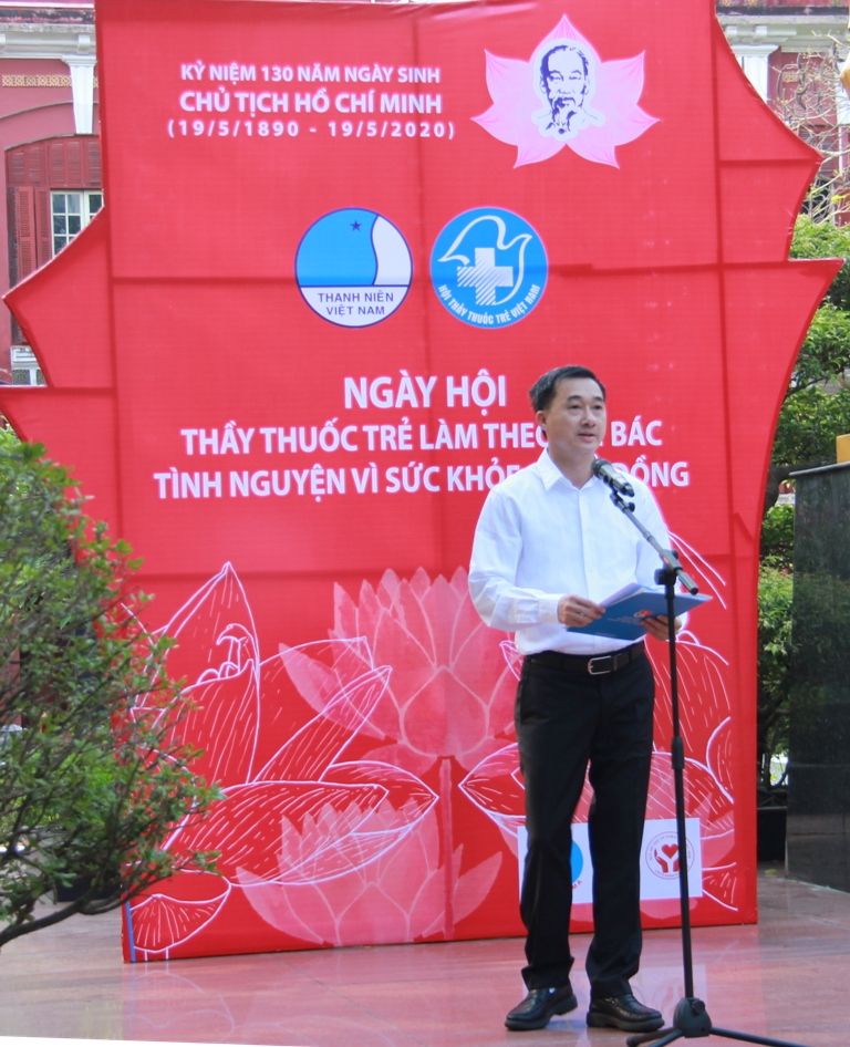 PGS.TS Trần Văn Thuấn, Thứ trưởng Bộ Y tế, Phó Chủ tịch Hội LHTN Việt Nam, Chủ tịch Hội Thầy thuốc trẻ Việt Nam phát biểu tại Hành trình