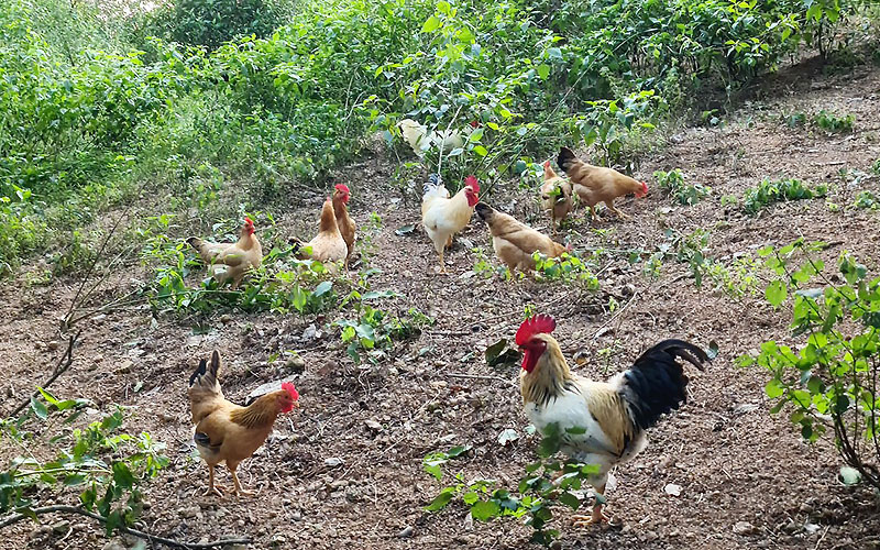 Đàn gà sinh học của anh Nhị được chăn thả hoàn toàn tự do.