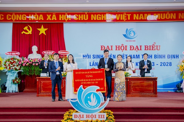 Thay mặt Ban Chấp hành Đảng bộ tỉnh, đồng chí Nguyễn Thị Phong Vũ - UV BTV, Trưởng ban Ban Dân vận Tỉnh ủy, Chủ tịch UBMTTQ Việt Nam tỉnh đã tặng Đại hội bức trướng mang dòng chữ “Sinh viên Bình Định - vững tri thức - giỏi kỹ năng - sẵn sàng hội nhập”.