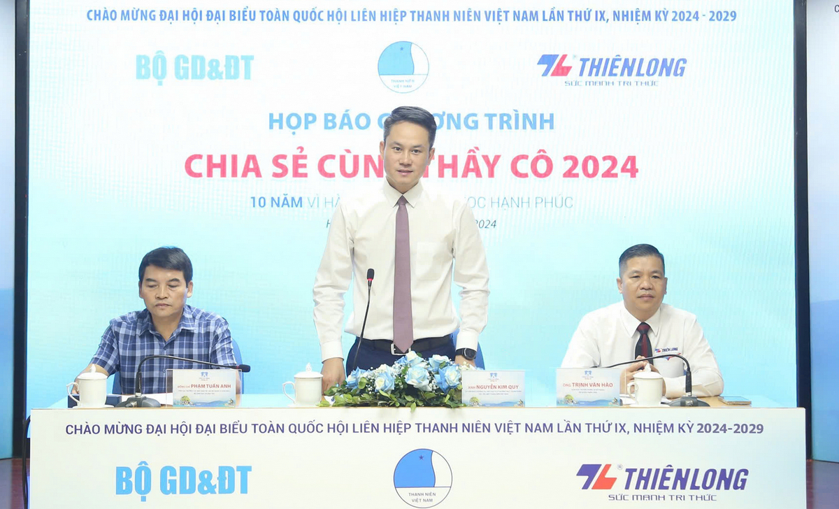 Ngày 20/8, tại Hà Nội, T.Ư Hội Liên hiệp thanh niên Việt Nam phối hợp với Bộ GD-ĐT, Tập đoàn Thiên Long và các đơn vị đã tổ chức họp báo chương trình “Chia sẻ cùng thầy cô” năm 2024.