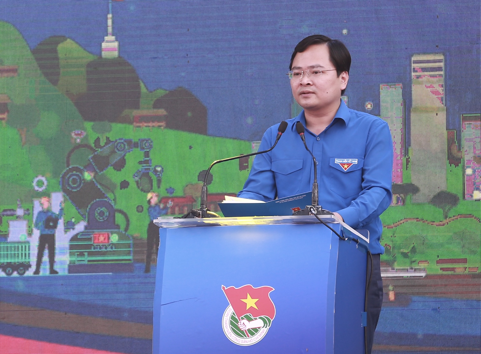 Đồng chí Nguyễn Anh Tuấn - Ủy viên BCH Trung ương Đảng, Bí thư thứ nhất Trung ương Đoàn phát biểu tại lễ ra quân Chiến dịch