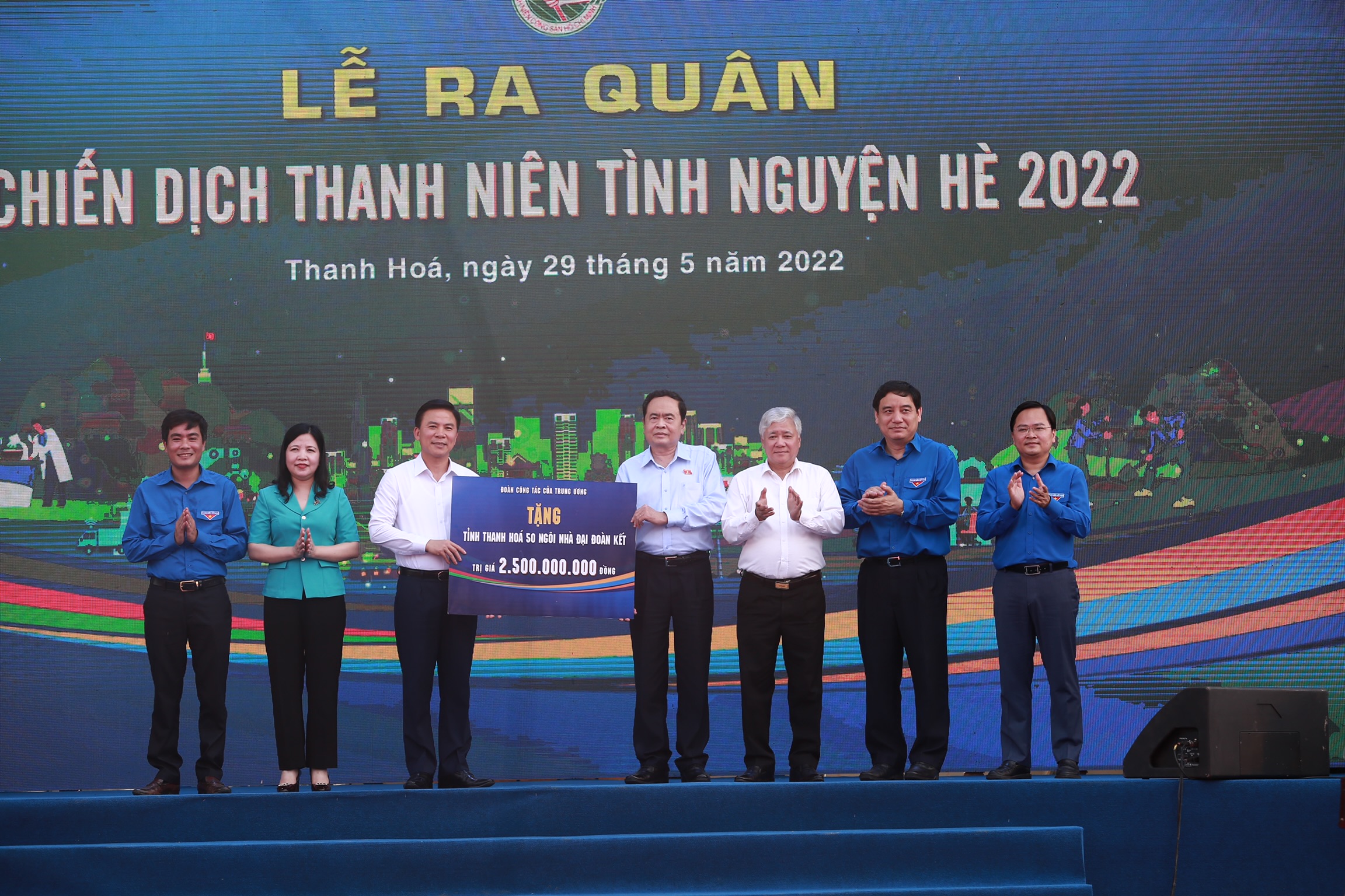 Các đồng chí lãnh đạo trao tặng 50 ngôi nhà Đại đoàn kết cho tỉnh Thanh Hóa