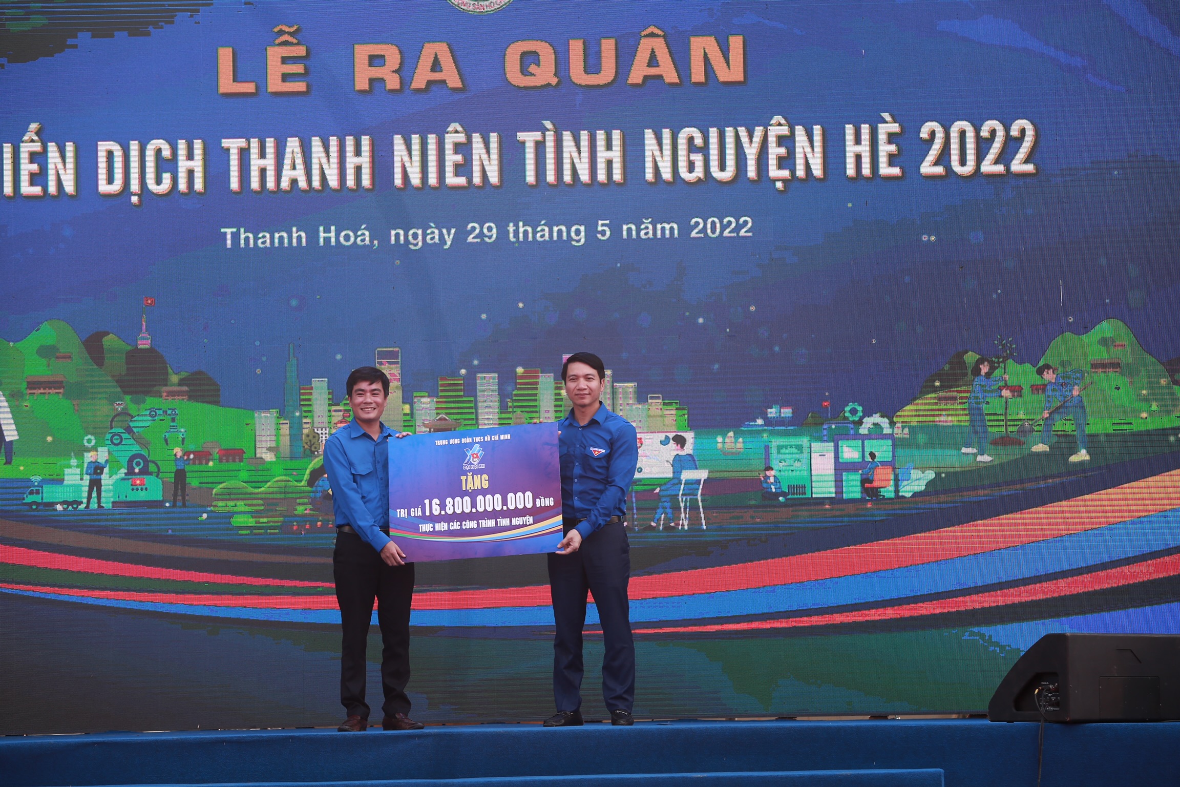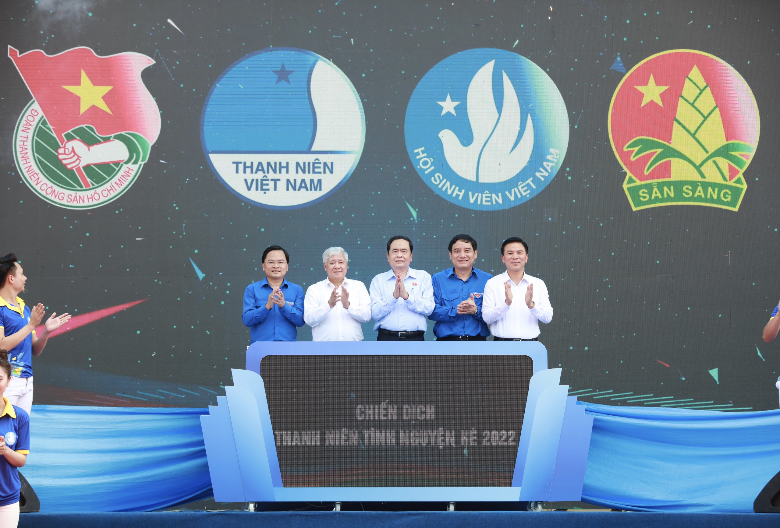 Các đồng chí lãnh đạo thực hiện nghi thức khởi động Chiến dịch Thanh niên tình nguyện hè 2022