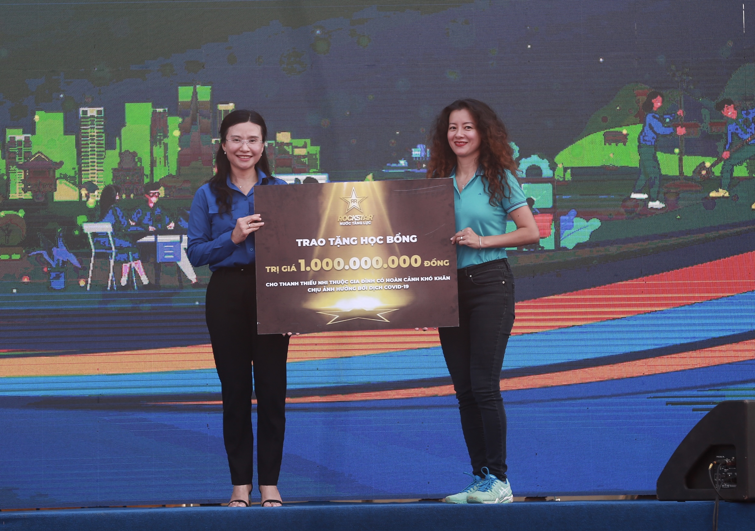 Đồng chí Nguyễn Phạm Duy Trang - Bí thư T.Ư Đoàn, Chủ tịch Hội đồng Đội T.Ư tiếp nhận hỗ trợ từ đại diện Suntory PepsiCo Việt Nam nguồn lực 1 tỷ đồng để trao tặng học bổng cho con em công nhân khó khăn, chịu ảnh hưởng dịch COVID-19