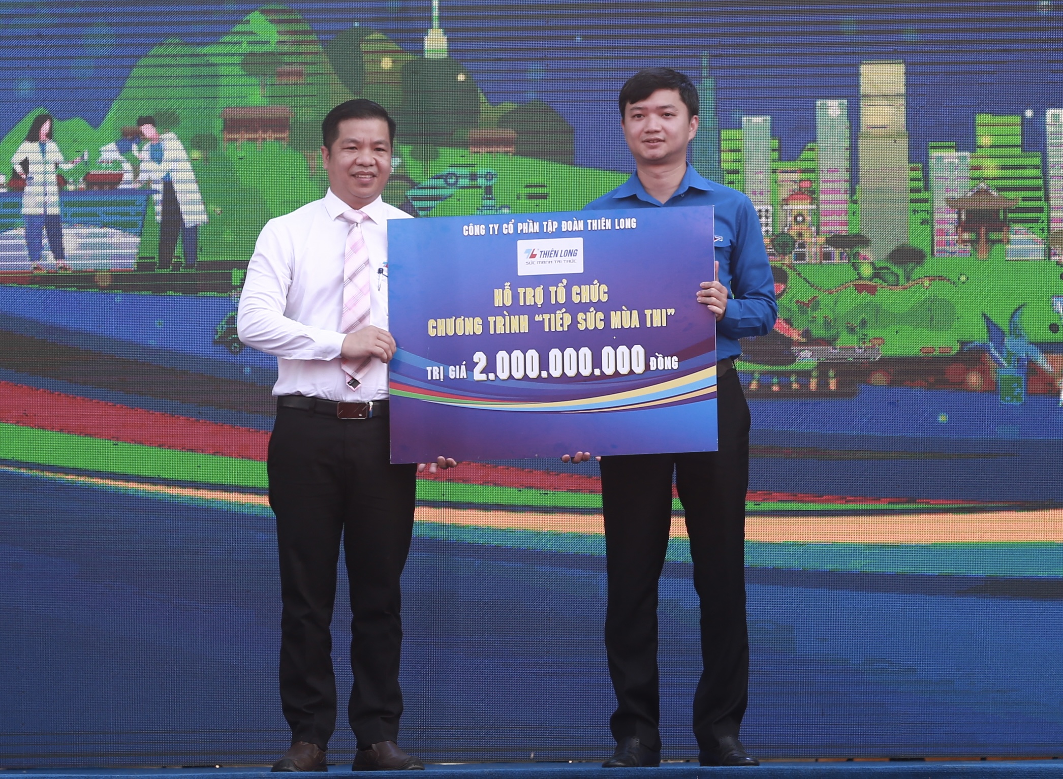 Đồng chí Nguyễn Minh Triết - Bí thư T.Ư Đoàn, Chủ tịch Hội SVVN tiếp nhận nguồn lực 2 tỷ đồng từ lãnh đạo Tập Đoàn Thiên Long hỗ trợ Chương trình Tiếp sức mùa thi.