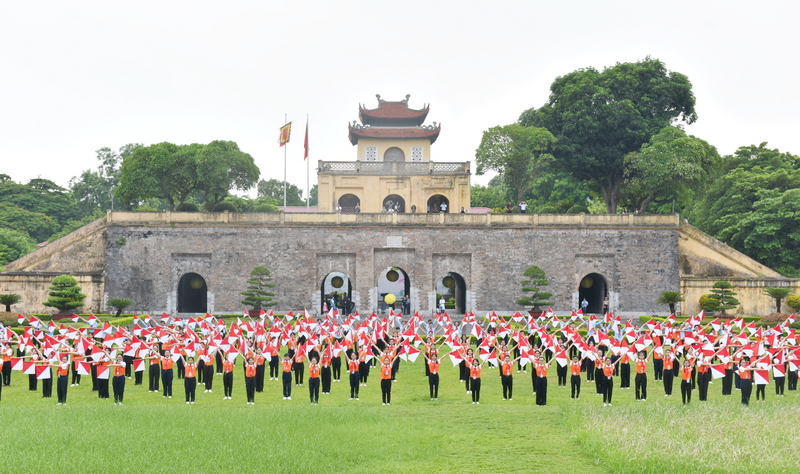 Sau Lễ thành lập Liên đội tạm thời và tham quan khu di tích Văn Miếu - Quốc Tử Giám, các đại biểu di chuyển về Khu di tích Hoàng Thành Thăng Long để cùng tham gia màn đồng diễn cờ Semaphore xác lập kỷ lục Việt Nam. Trên nền nhạc bài hát “Nụ cười hồng” với thông điệp “Chỉ huy Đội giỏi 2023”, màn đồng diễn đã diễn ra rất đẹp mắt và ấn tượng.