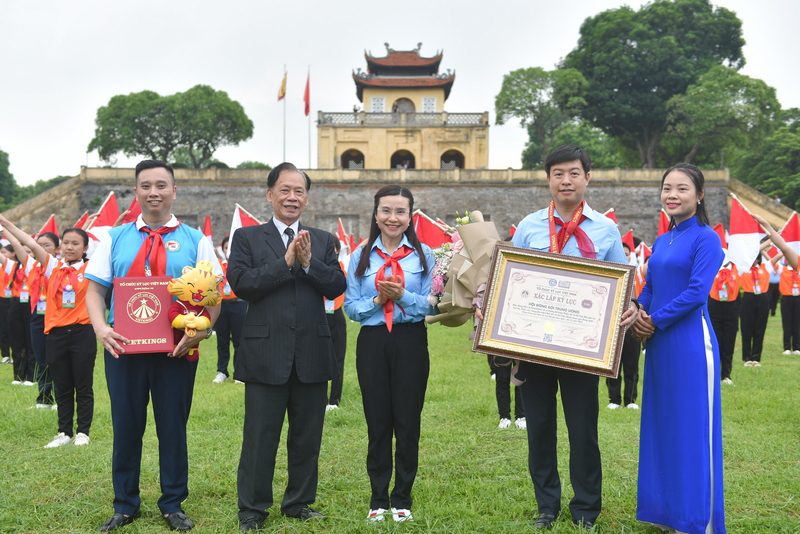 Đồng chí Thang Văn Phúc, Nguyên Thứ trưởng Bộ Nội vụ, Chủ tịch Trung ương Hội Kỷ lục gia Việt Nam trao quyết định công nhận kỷ lục cho Hội đồng Đội Trung ương