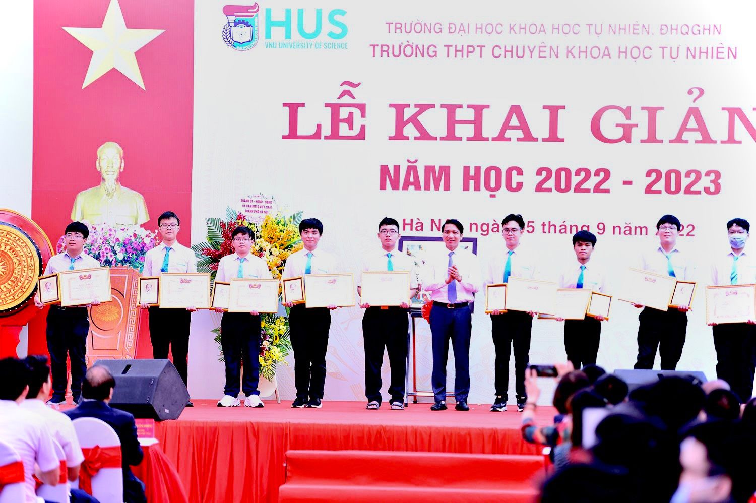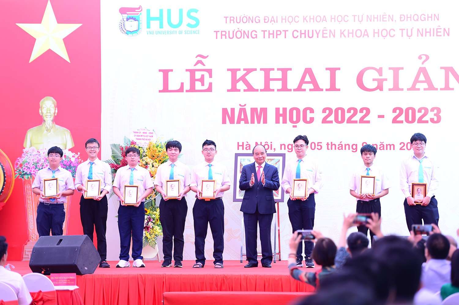 Chủ tịch nước Nguyễn Xuân Phúc dự Lễ khai giảng năm học 2022 - 2023 tại trường THPT Chuyên Khoa học Tự nhiên (trường ĐH Khoa học Tự nhiên, ĐHQG Hà Nội).