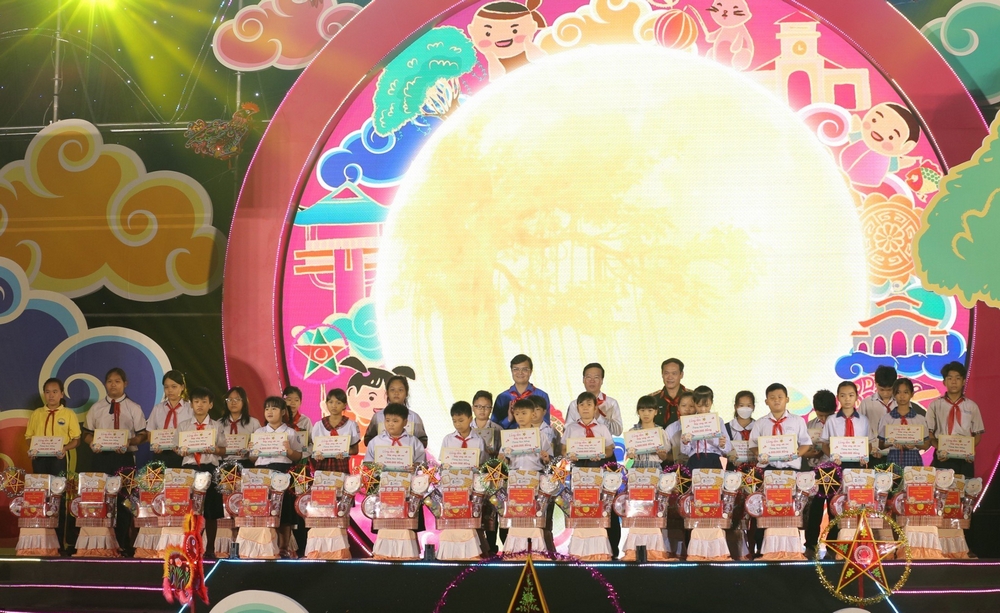 Hơn 1.000 em thiếu nhi có hoàn cảnh khó khăn của các huyện, thành phố trên địa bàn tỉnh Bình Phước tham dự chương trình cũng được nhận 1 chiếc lồng đèn Trung thu và phần quà trị giá 350 ngàn đồng.