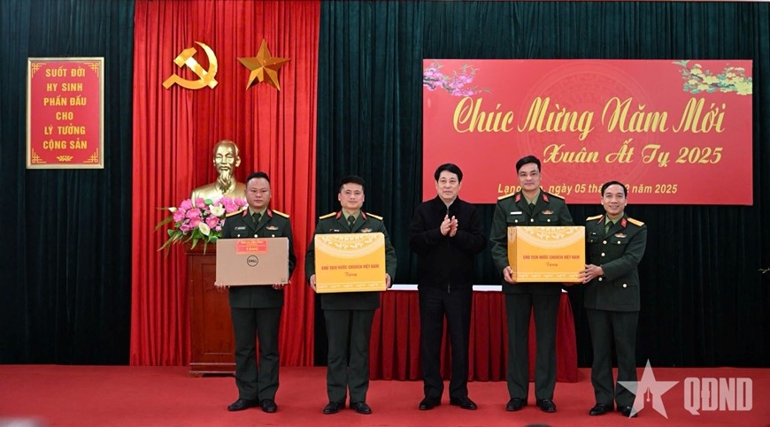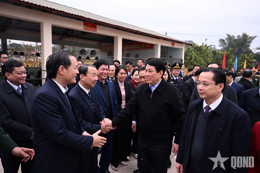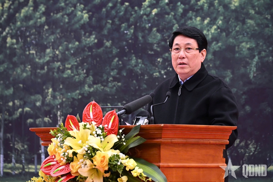 Phát biểu với cán bộ, chiến sĩ Trung đoàn 123, Chủ tịch nước biểu dương kết quả thực hiện nhiệm vụ năm 2024, nhiệm vụ sẵn sàng chiến đấu, tổ chức vui xuân đón tết cho bộ đội mà đơn vị đã thực hiện. Chủ tịch nước lưu ý, để thực hiện thắng lợi các nhiệm vụ chính trị, phát triển kinh tế - xã hội của địa phương, bảo vệ vững chắc độc lập chủ quyền lãnh thổ, an ninh biên giới quốc gia, giữ vững an ninh chính trị, trật tự an toàn xã hội trên địa bàn tỉnh, Trung đoàn 123 nói riêng, LLVT tỉnh Lạng Sơn nói chung cần làm tốt công tác tham mưu giúp cấp ủy, chính quyền địa phương thực hiện tốt công tác quản lý nhà nước về quốc phòng, an ninh, đối ngoại, xây dựng khu vực phòng thủ tỉnh vững mạnh, xây dựng “thế trận lòng dân” vững chắc bảo vệ Tổ quốc trong tình hình mới; phối hợp chặt chẽ với các lực lượng nắm chắc tình hình, nâng cao khả năng đánh giá, dự báo, kịp thời xử trí các tình huống từ cơ sở; giữ vững an ninh chính trị, trật tự an toàn xã hội địa bàn, nhất là trong các sự kiện chính trị trọng đại của Đảng, của đất nước.
